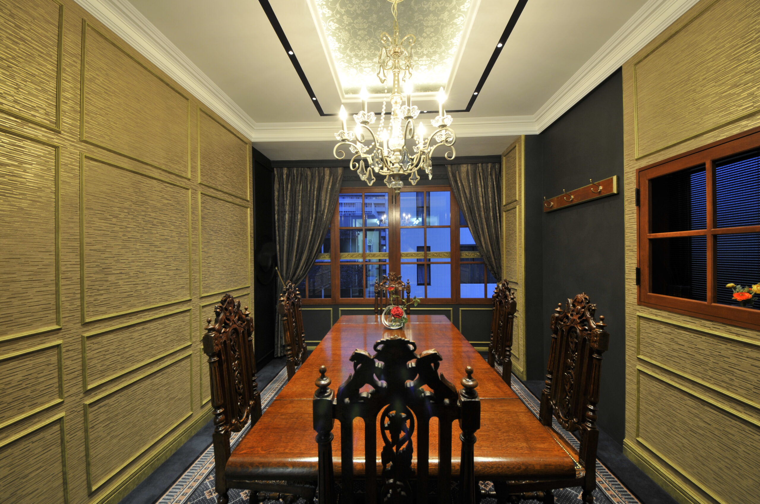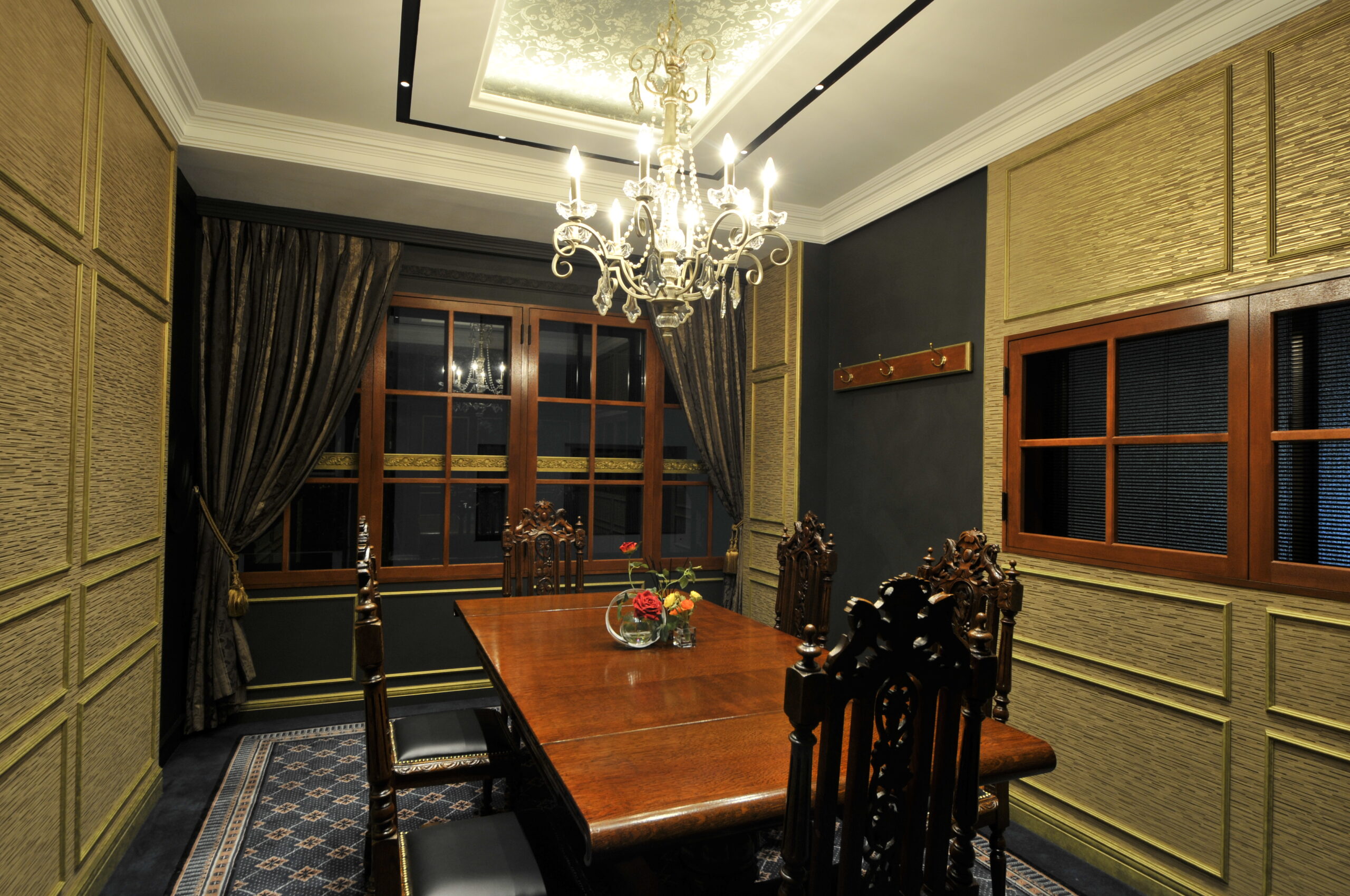ごく一般的なオフィスの応接間を、豪華絢爛な商談の舞台として再生することを目指した計画である。日常的な平凡な一室を、非日常性と高揚感に満ちた「迎賓空間」へと格上げすることをテーマとした。この部屋に訪れる来客の多くは、大企業の重役や要職にある人々である。その特性を踏まえ、施主からの強い要望である「金」のイメージをベースに、重厚でクラシカルなアンティークスタイルの内装を提案した。