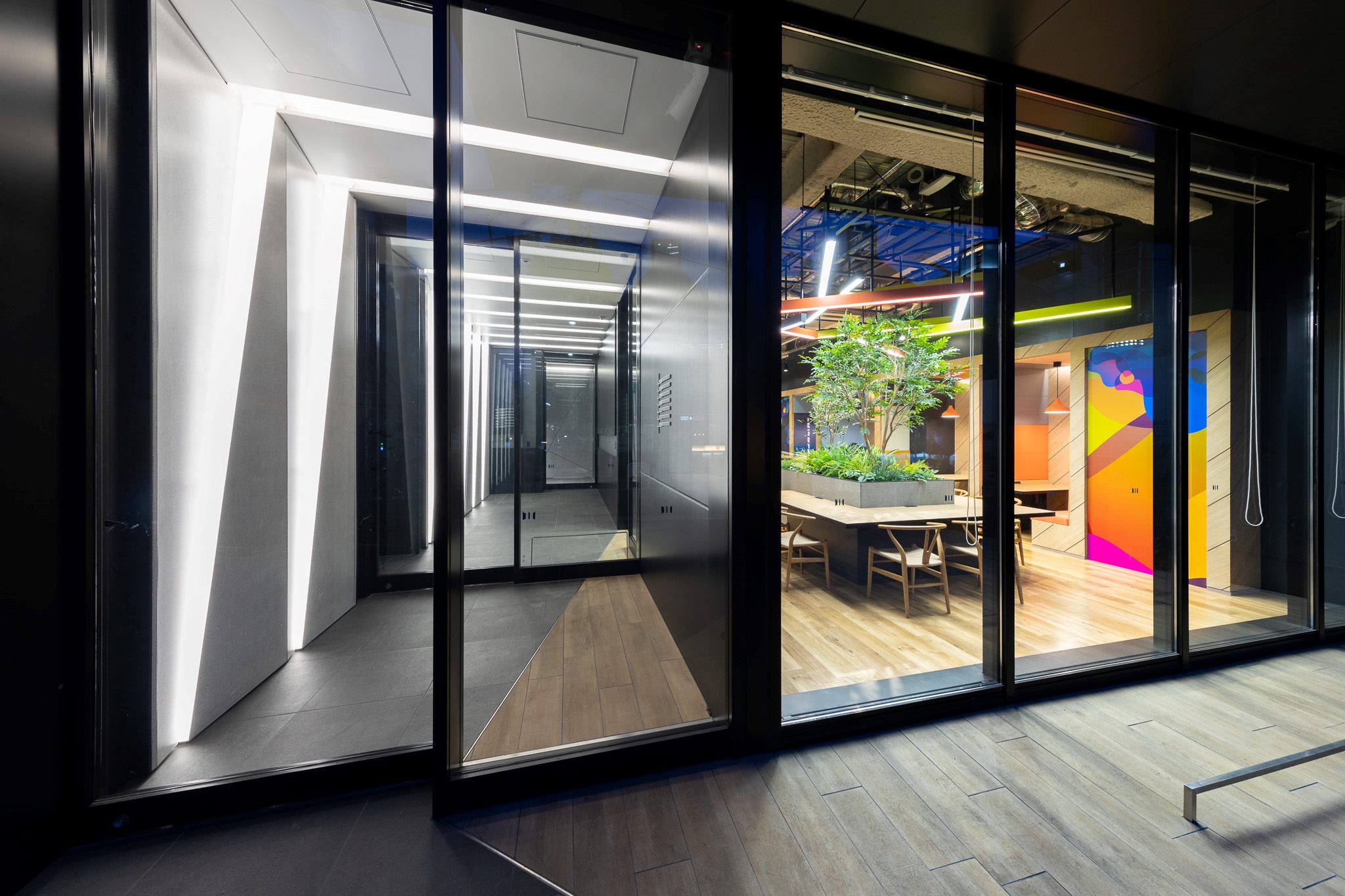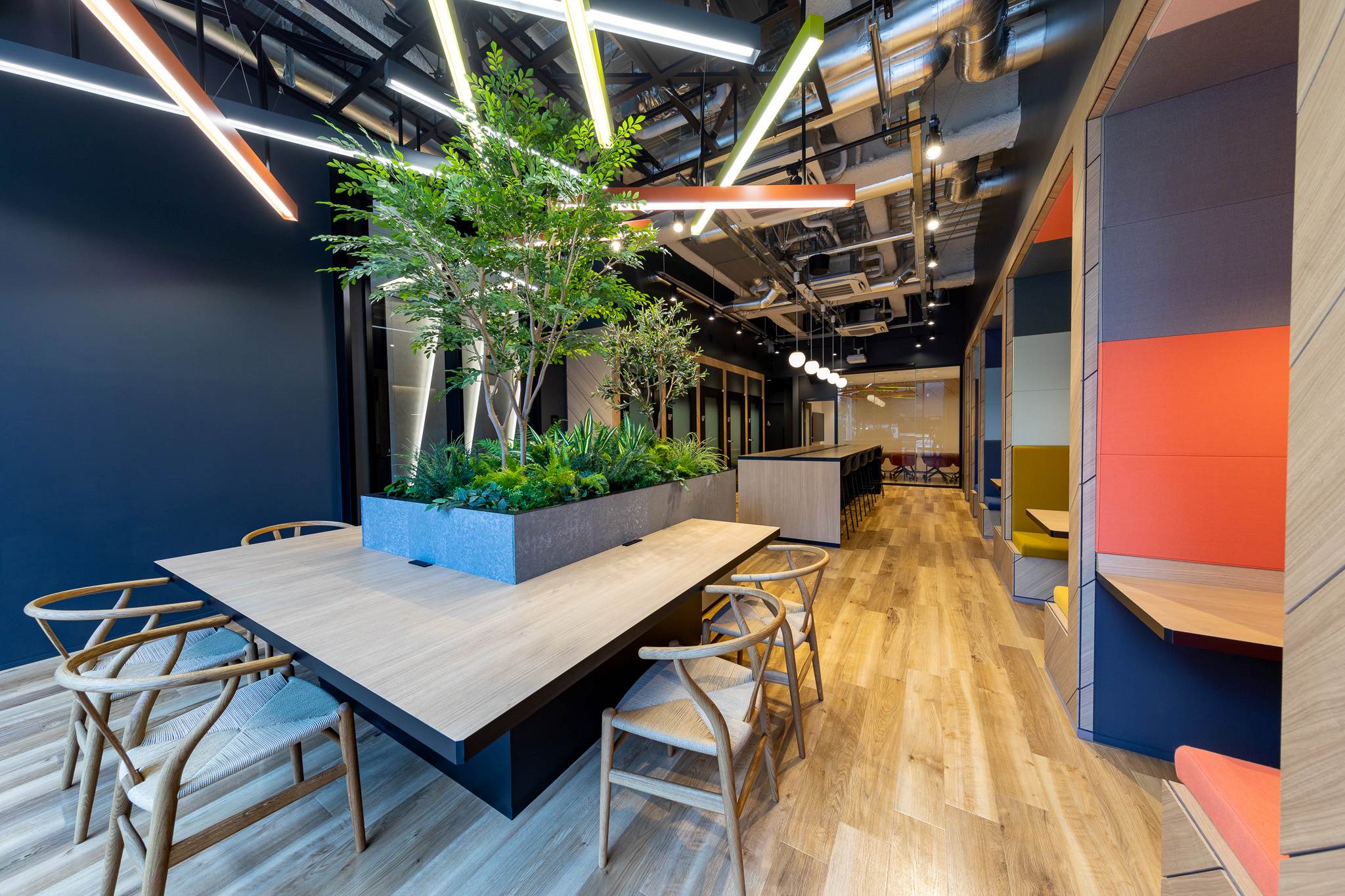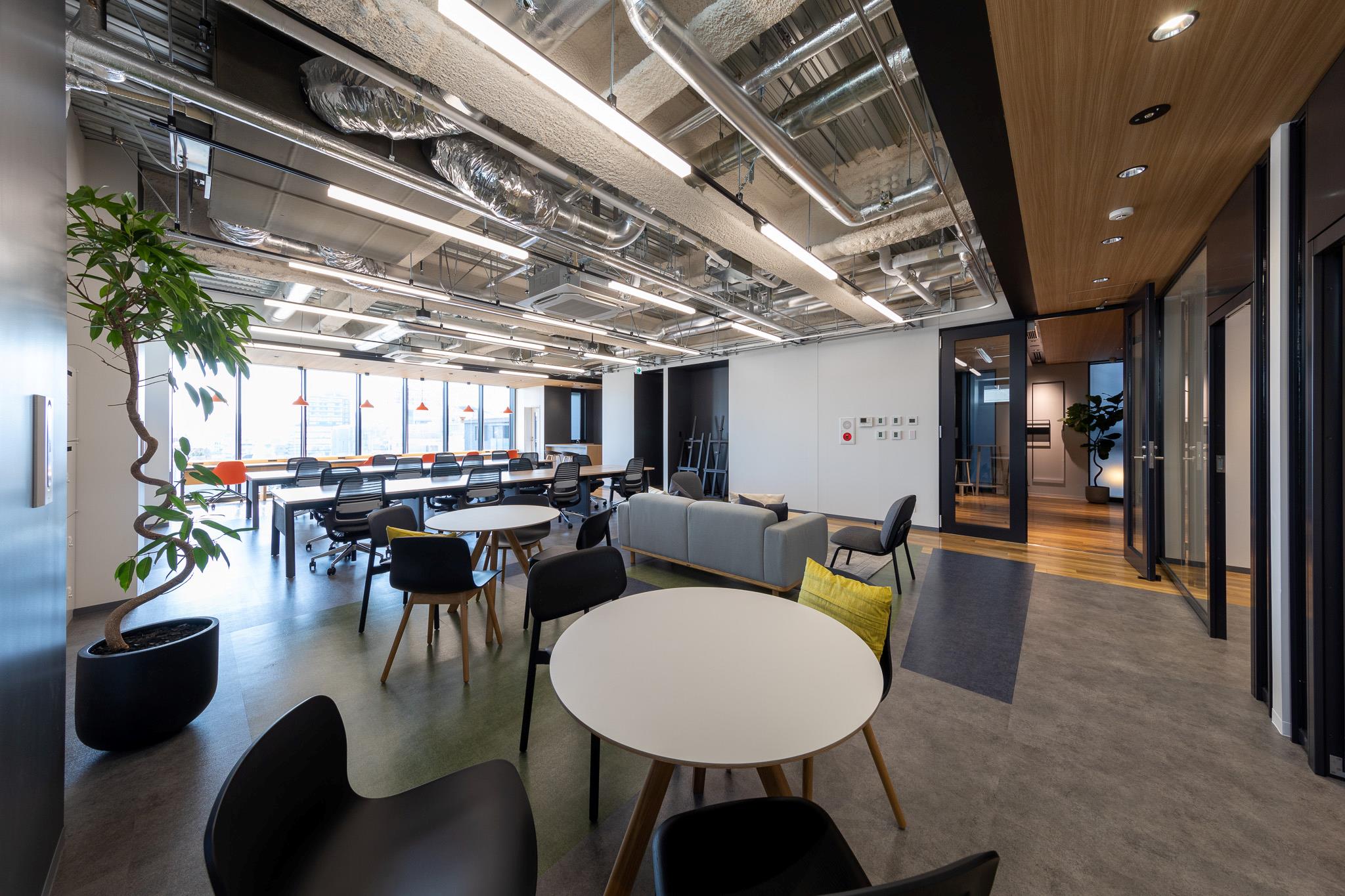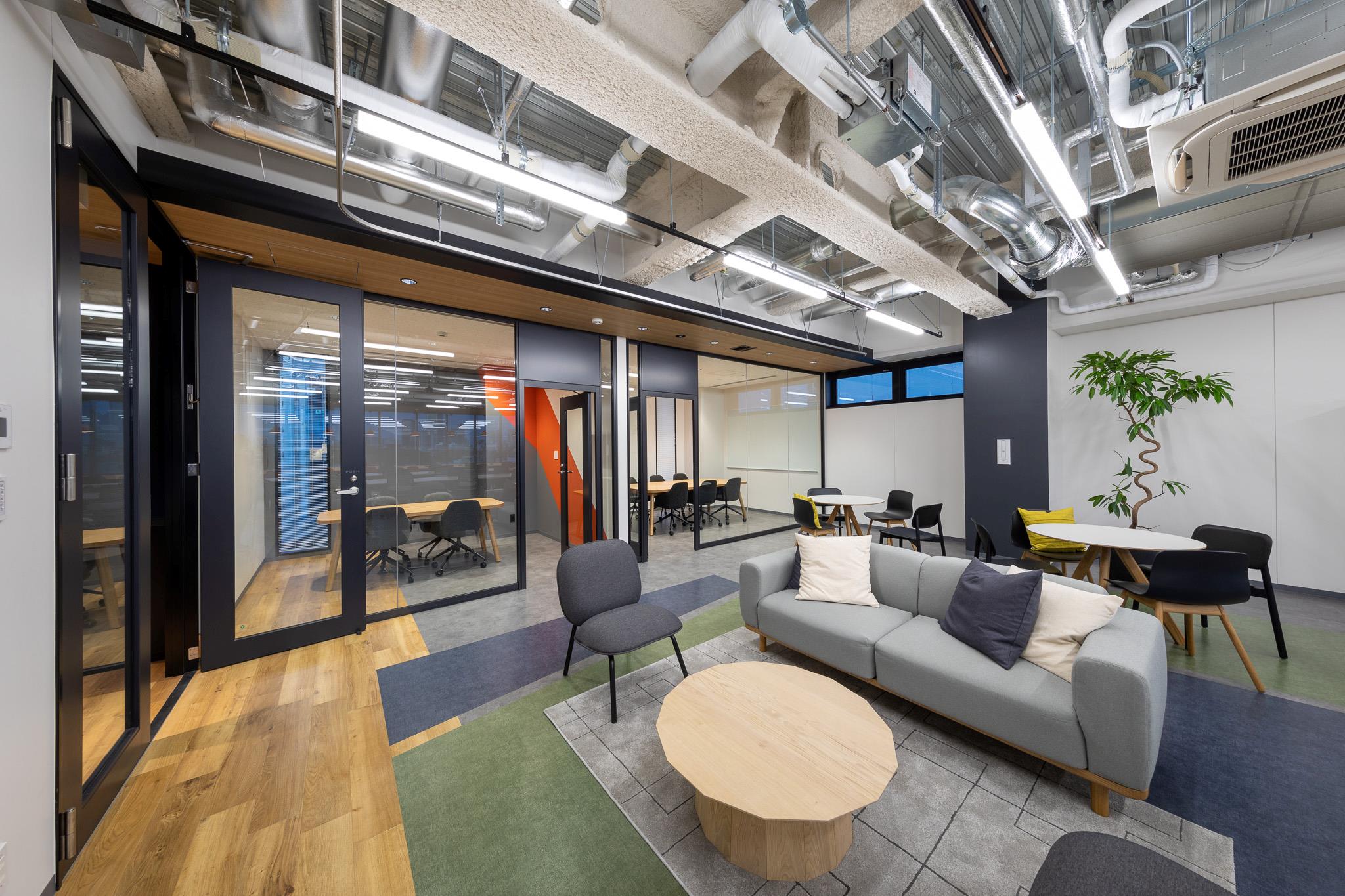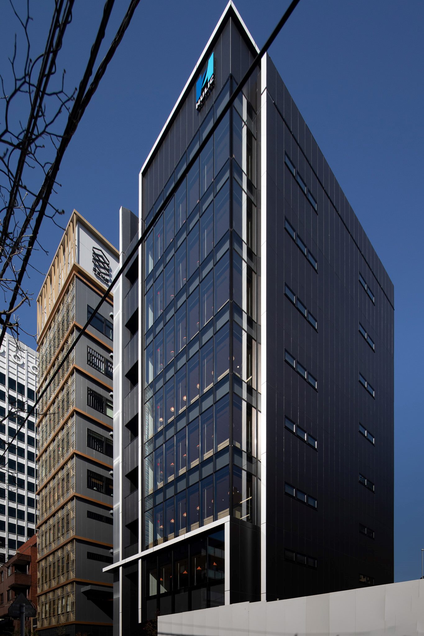 本計画は、六本木という国際性と先進性を併せ持つ地域特性を踏まえ、ベンチャー企業や外資系企業を主なターゲットとしてデザインを構築したオフィスビルである。多様な企業文化を受け入れ、共創を促すため、1階には誰もが利用できるコワーキングスペースを設け、交流と創造を誘発する場としている。敷地が持つ南側の良好な眺望を最大限活用するため、前面にガラスファサードを採用し、窓際にはハイカウンターを計画。さらに床・天井仕上げを切り替えることで、執務空間に多様な雰囲気と分節を生み出した。加えて、法規上求められる屋外階段や避難バルコニーをガラスファサードと調和させ、敷地条件に即した特徴的な外観デザインへと昇華している。