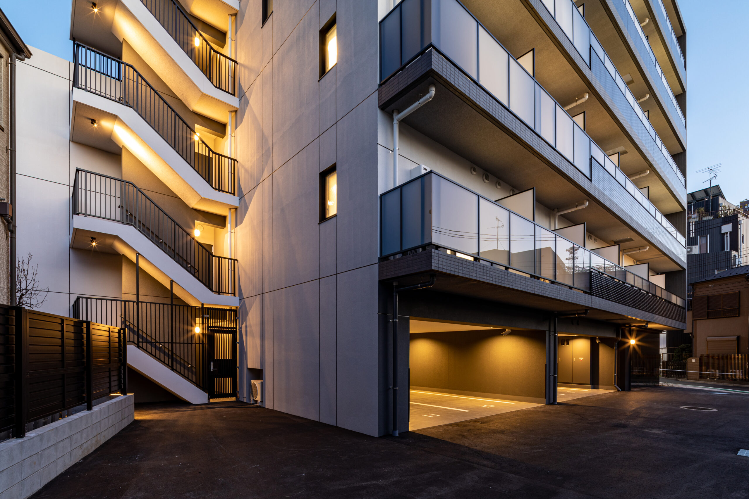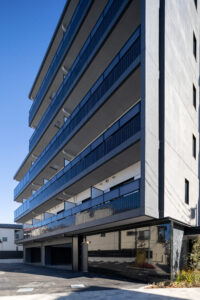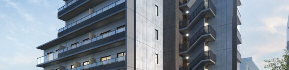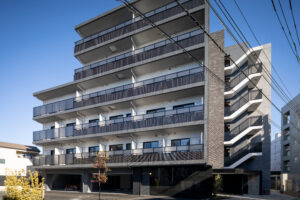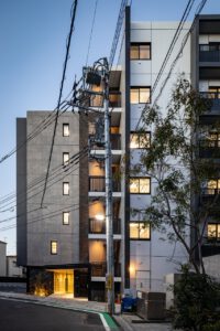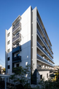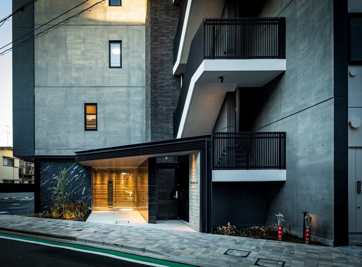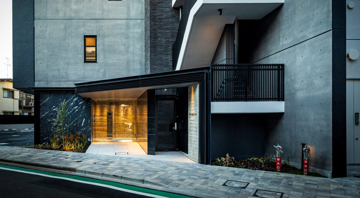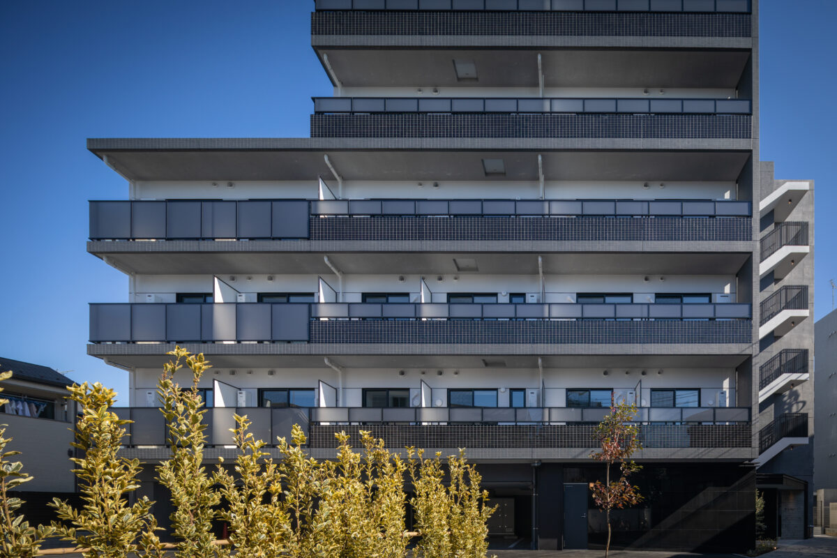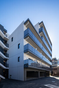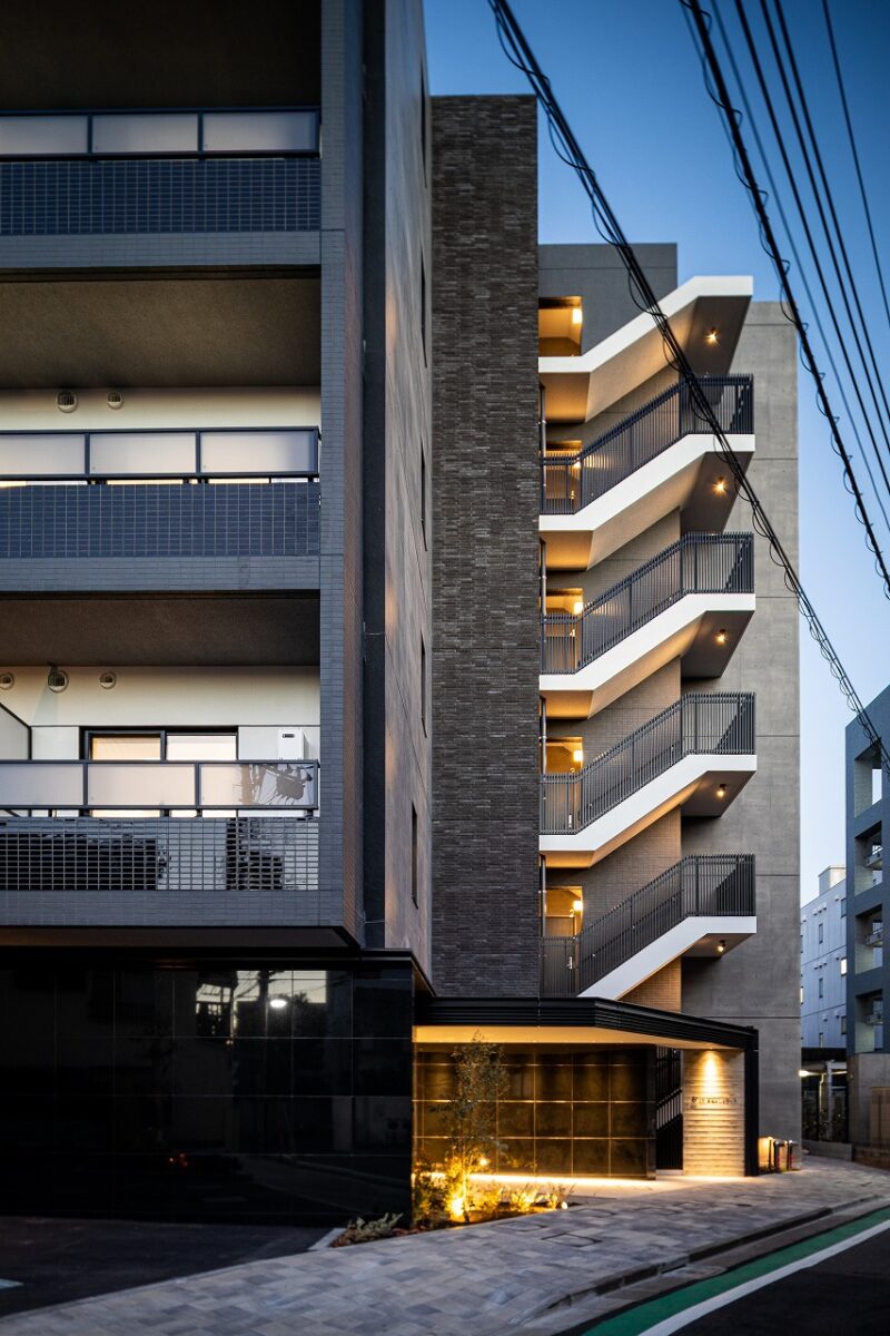 荒川区東尾久の落ち着いた住宅地に建つ、総戸数49戸の単身者向け集合住宅である。本計画では、事業収支を最適化するために敷地ポテンシャルを最大限に活かし、住戸数を確保する戦略をとった。具体的には、単身者向けでありながら「超コンパクト1LDK」という形式を採用。限られた専有面積の中で明確な寝食分離を実現し、ファミリータイプに匹敵する機能性と居住性を備えた高密度なプランニングとしている。