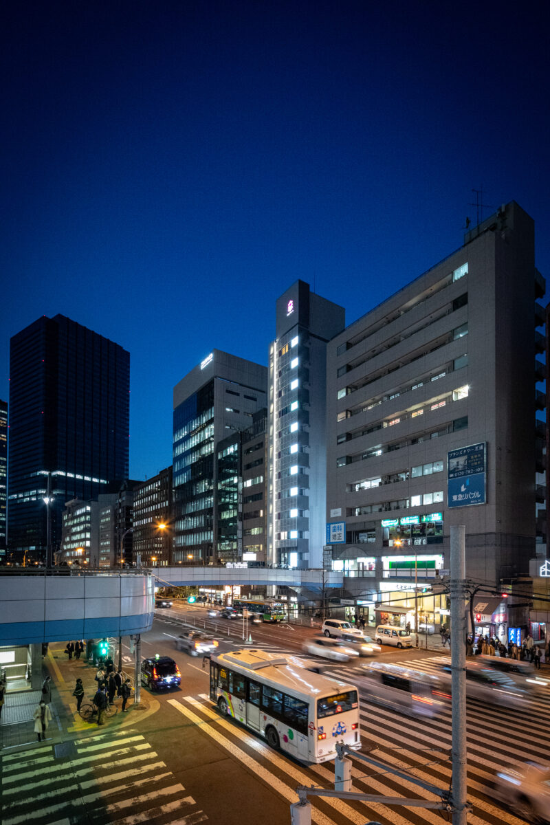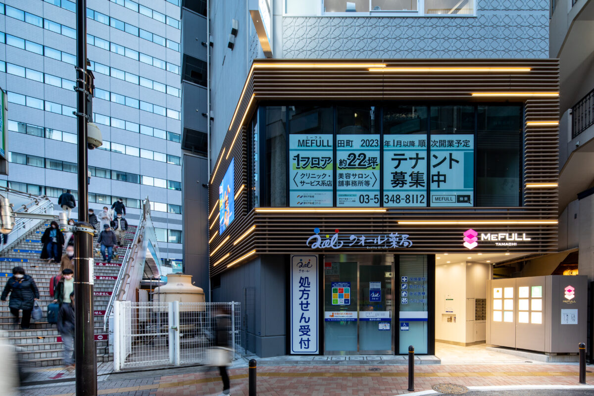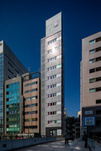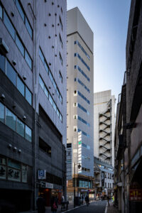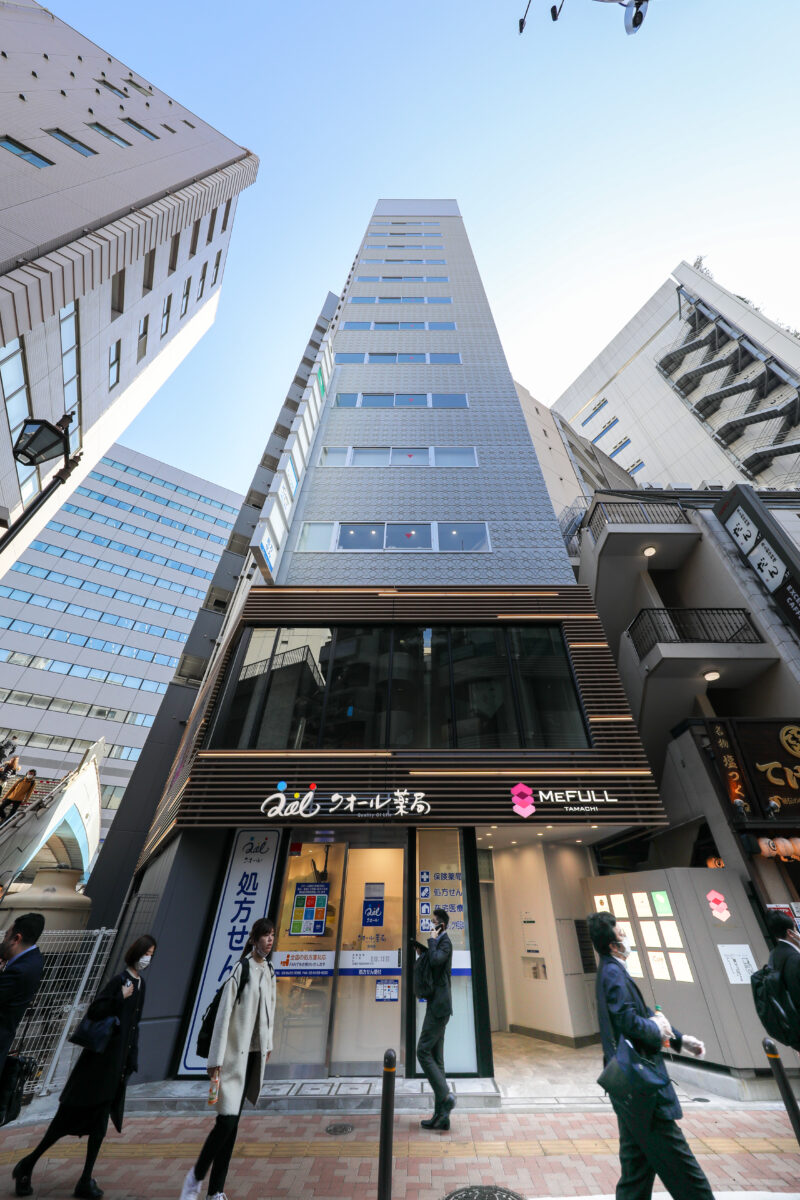MEFULL田町は、田町駅前という高い視認性と厳しい敷地条件を併せ持つ立地において、塔状比6.0を超えるスリムなペンシルビルとして計画された。限られた敷地を最大限に活かしながら、都市の動線に対して過度に主張するのではなく、端正で品位のある立ち姿をつくることを意図している。