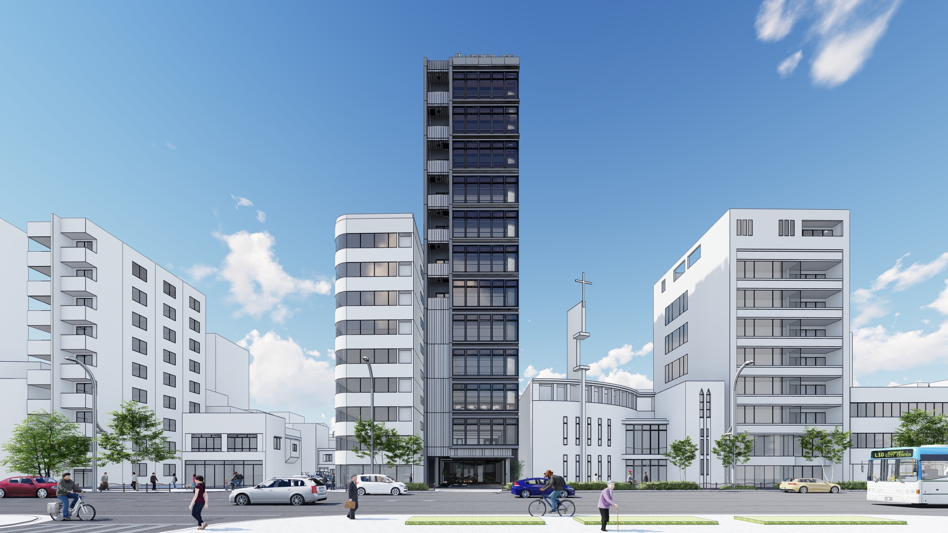 上野駅近くに計画した本オフィスは、同規模では鉄骨造が主流となる中で、RC造を採用し、新たなオフィス空間の形式を探ったプロジェクトである。
