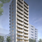 中廊下型の単身者向け賃貸マンションである。限られた容積の中で住戸数を確保しつつ収支バランスを最大化するため、各住戸は超コンパクト1LDKとしながらも、ファミリータイプに近い動線計画と収納量を確保したプランニングとしている。寝室とリビングをゆるやかに分節することで、ワークとリラックスの切り替えがしやすい構成とした。外観は、想定する入居者層のライフスタイルや嗜好を分析し、白・グレー・黒を基調としたモノトーンの素材をアッセンブル。過度な装飾を排し、陰影とラインの強弱で表情をつくることで、都心で働く若い世代の感性に響く、シャープでありながら温度感のあるデザインを目指している。