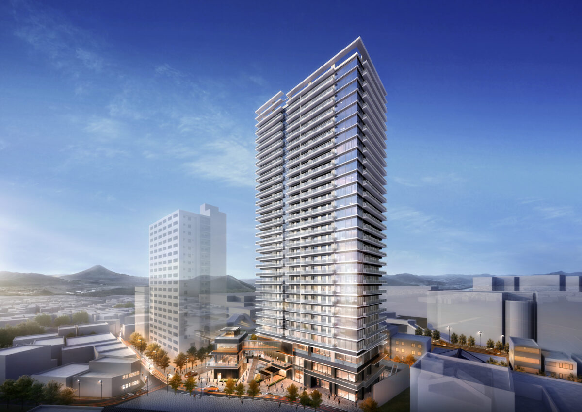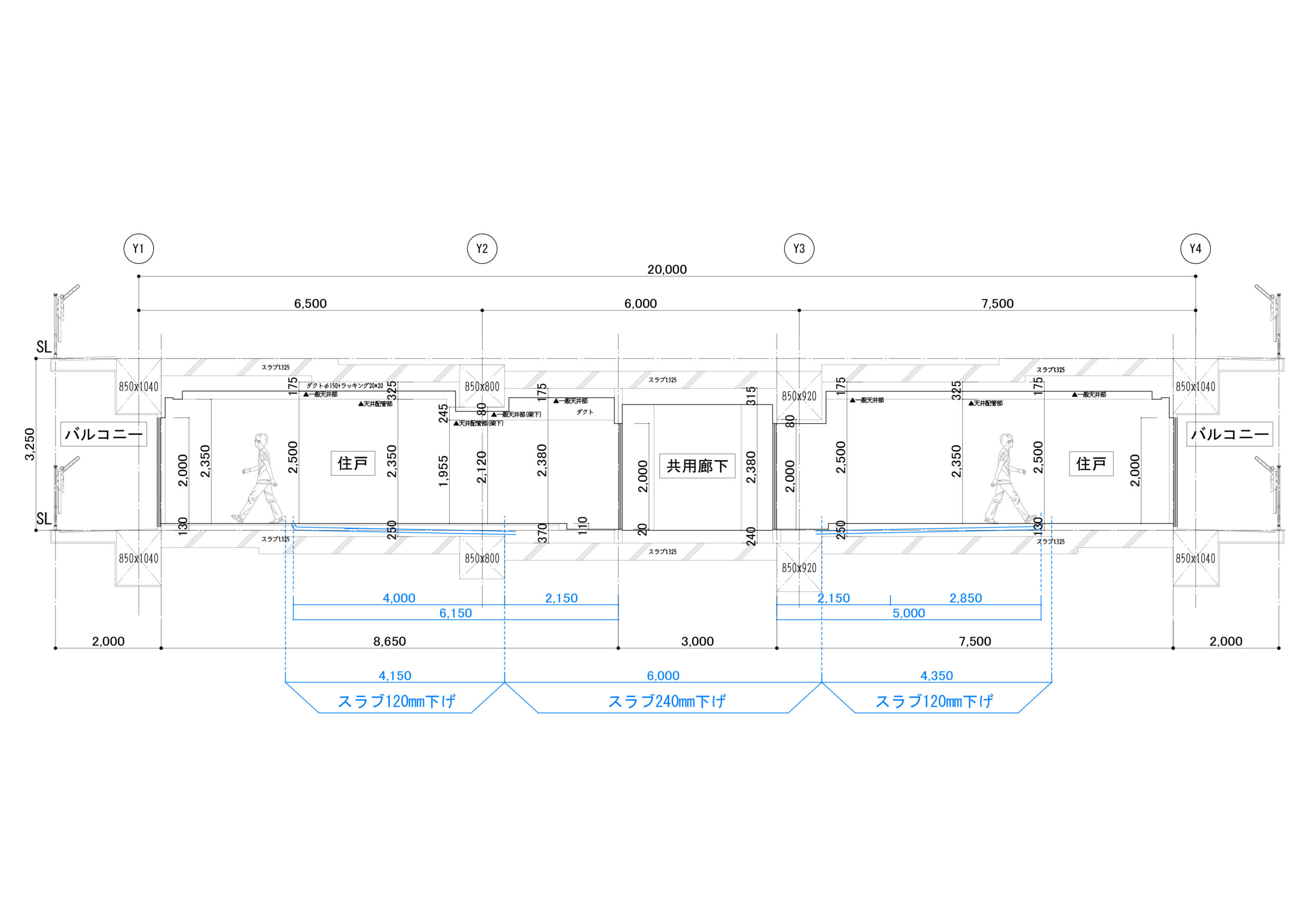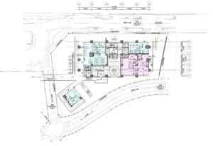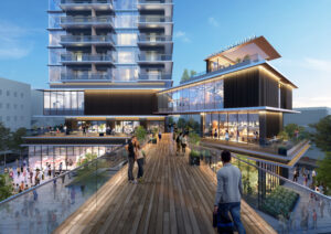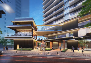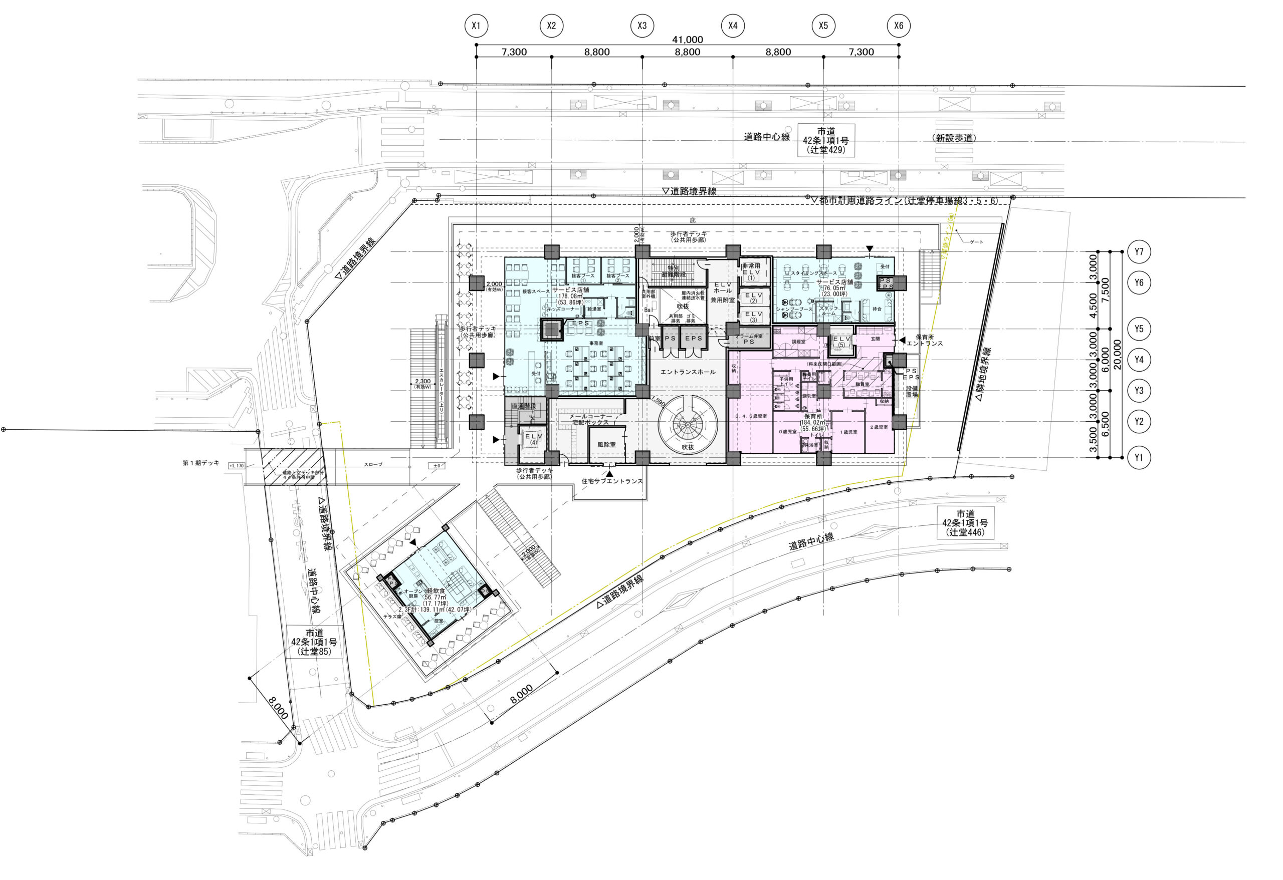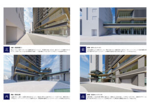 本計画において、私たちは低層部の商業空間と高層部の分譲マンションの住戸詳細に至るまで、複合開発の全体設計を行った。