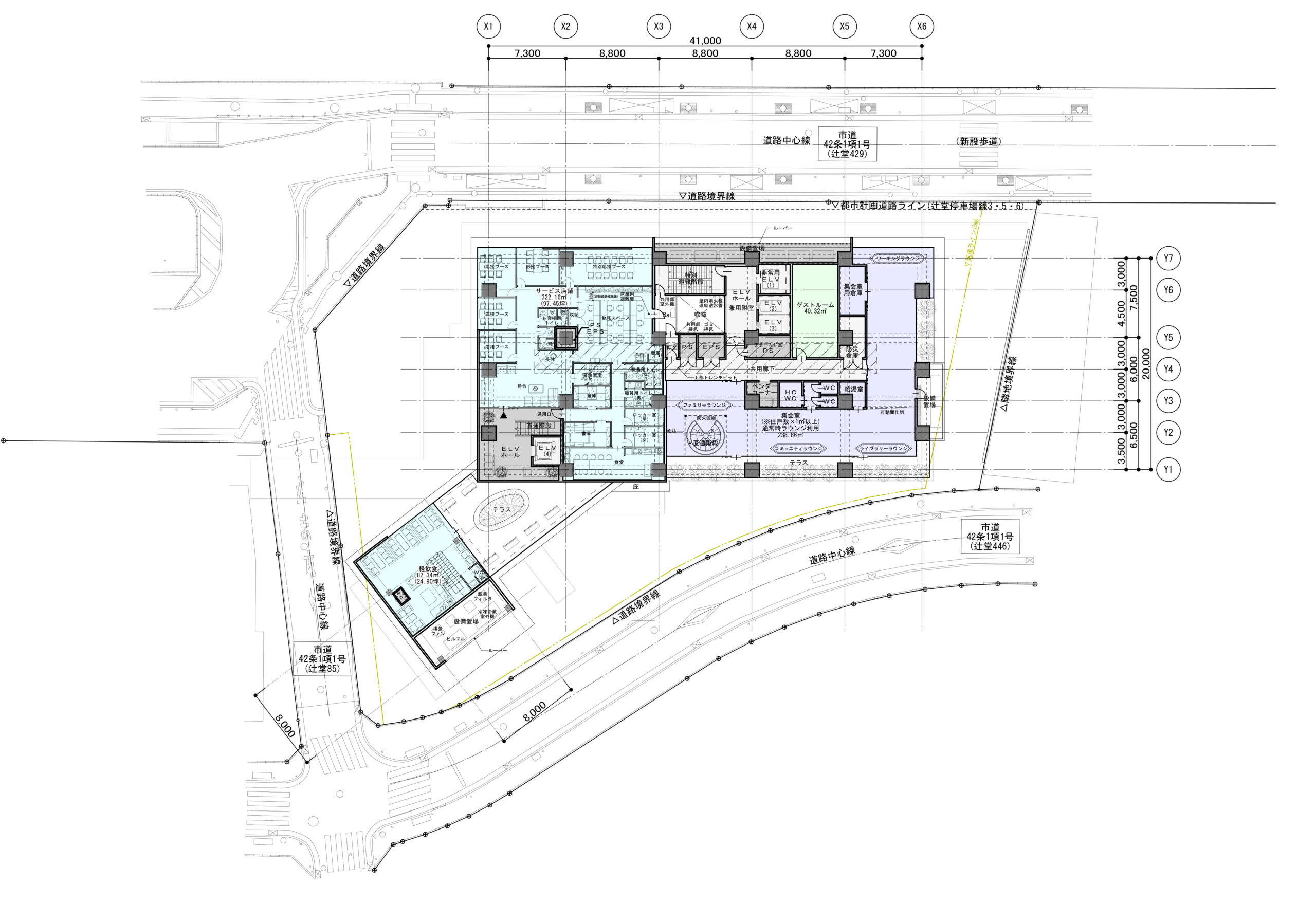 本計画では総合設計制度を有効に活用し、敷地の東西南北それぞれに、街のアクティビティを受け入れる豊かな空地(オープンスペース)を創出することを目指した。