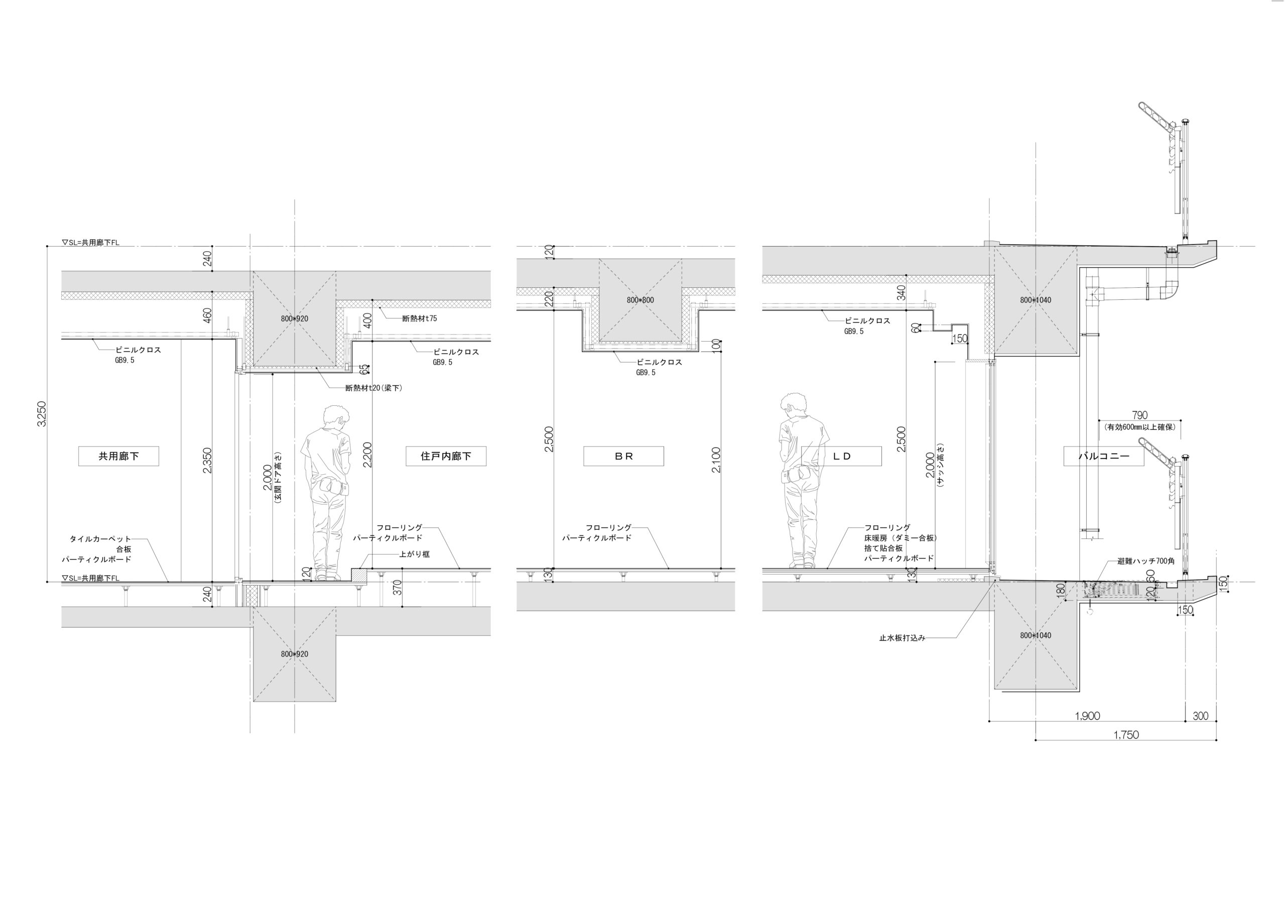 そして、これら性格の異なる空地をつなぐように、東側には敷地を南北に横断する「貫通通路」を設け、都市空間が連続するよう計画した。