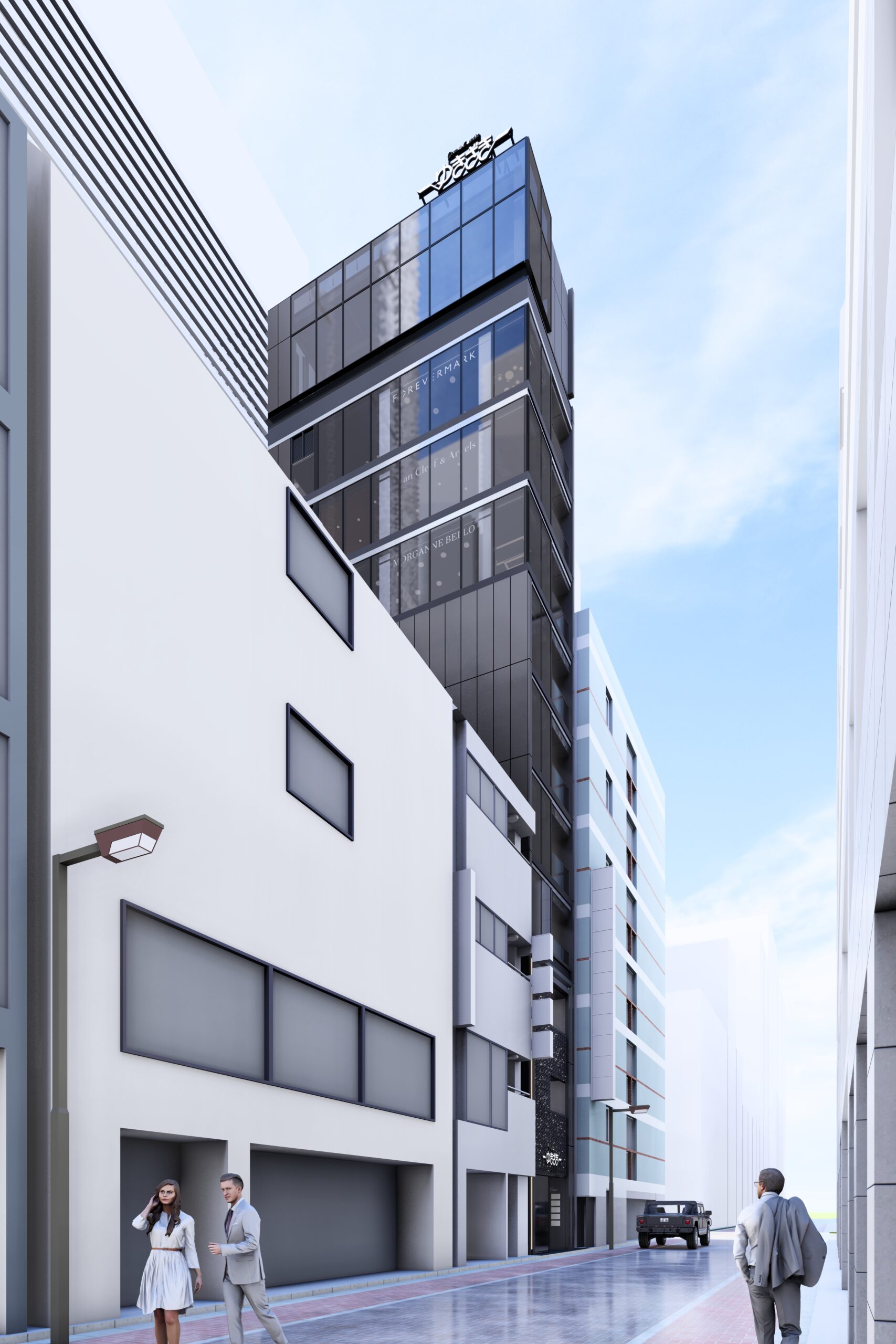 また、間口の制約がある中でも銀座らしい品格と高級感を演出するため、エレベーターには全面ガラス張りの意匠を採用しております。透明性がもたらす軽やかさと開放感により、細長い敷地形状を感じさせない上質な体験を創出しています。