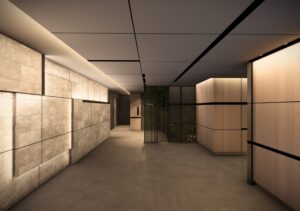 〈スクエア〉というコンセプトを軸に、ファサードからディテールに至るまで、一貫したデザインフィロソフィーで建築全体をまとめ上げている。