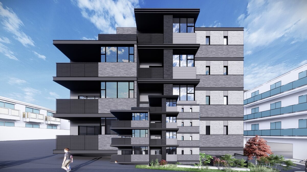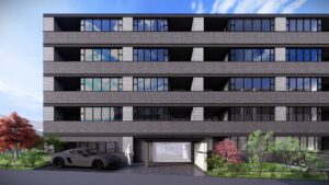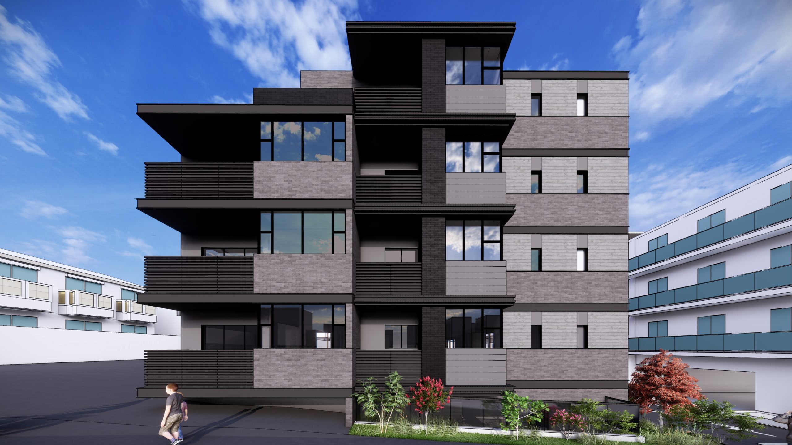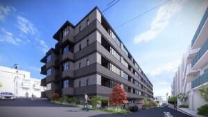 埼玉県朝霞台駅および北朝霞駅から徒歩5分という、2路線が利用可能な交通利便性の極めて高い立地にて、新たな共同住宅の設計を手掛けた。敷地は西側と南側の二面が道路に接する角地であるが、特筆すべきは西側道路と南側道路との間に最大約5mもの高低差が存在することである。この複雑な地形的制約を建築的な工夫によって乗り越え、土地のポテンシャルを最大限に引き出すことが、本プロジェクトにおける設計の要となった。