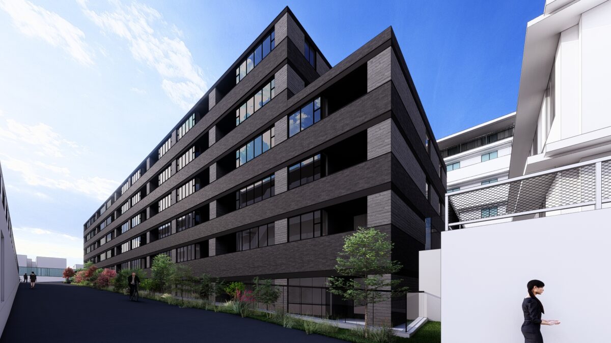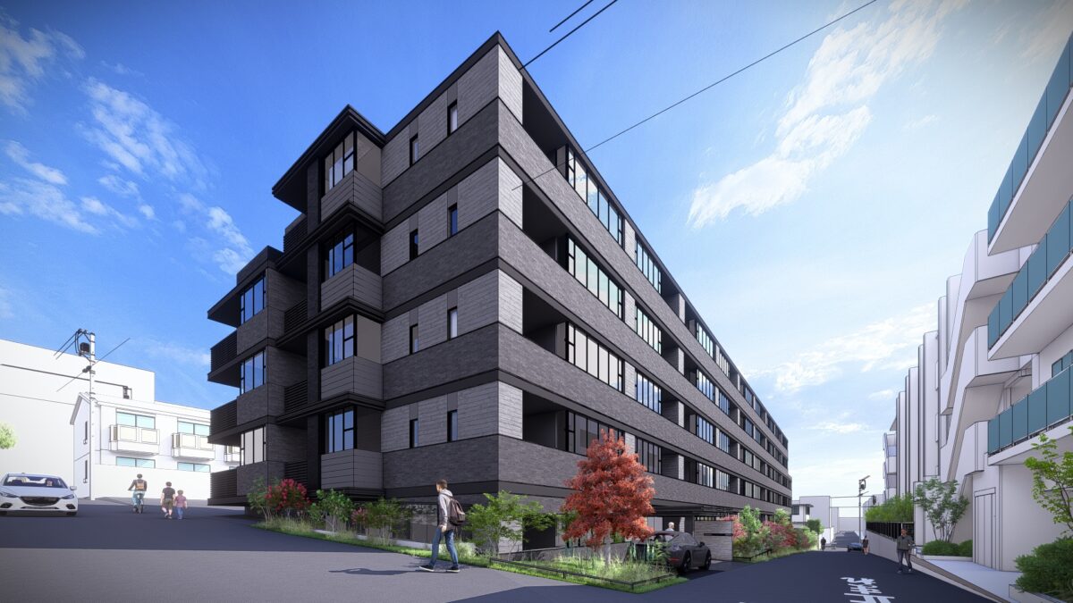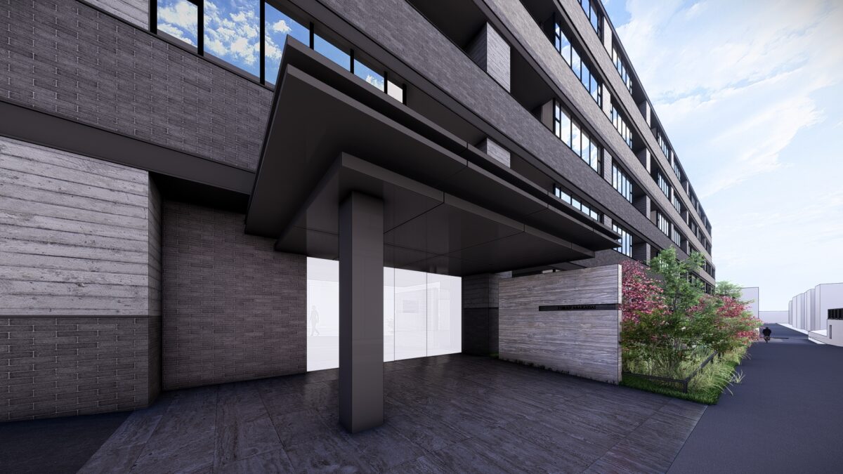 建物の顔となるエントランス付近には、シンボルツリーとしてマメザクラを配置した。春には可憐な花を咲かせ、四季の移ろいを告げるこの樹木は、居住者を優しく出迎える温かな存在となると同時に、道行く人々の記憶にも残る地域のランドマークとなることを意図している。技術的な挑戦と意匠的な配慮を重ね、街の風景に新たな彩りを添える住まいを目指した。