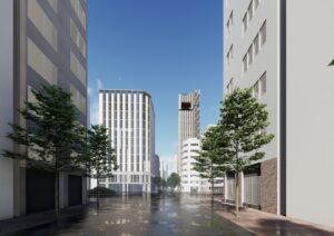 銀座の賑わいをマロニエゲートから計画地へと連続させ、界隈に溶け込みつつ新たな象徴となる建築を目指す。