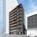 総戸数48戸の賃貸向け共同住宅である。30~50㎡程の一般的な1LDK~2LDKを中心に構成しつつ、130㎡の最上階ワンフロア住戸と、100㎡の吹抜メゾネット住戸の2戸をプレミアム住戸として計画している。