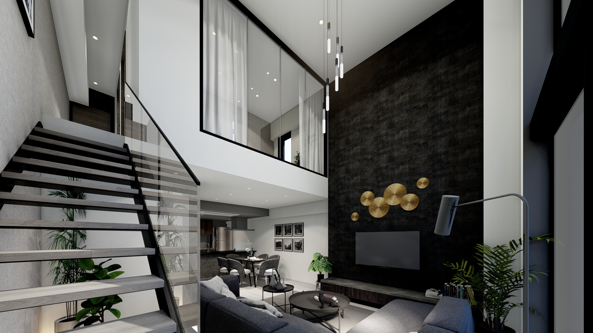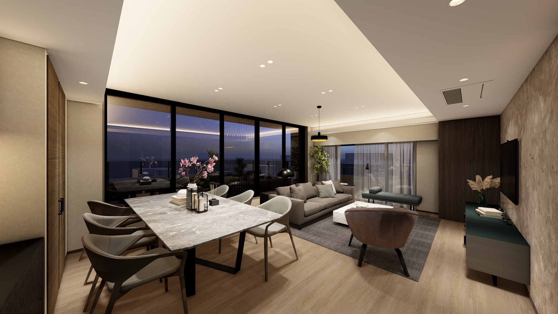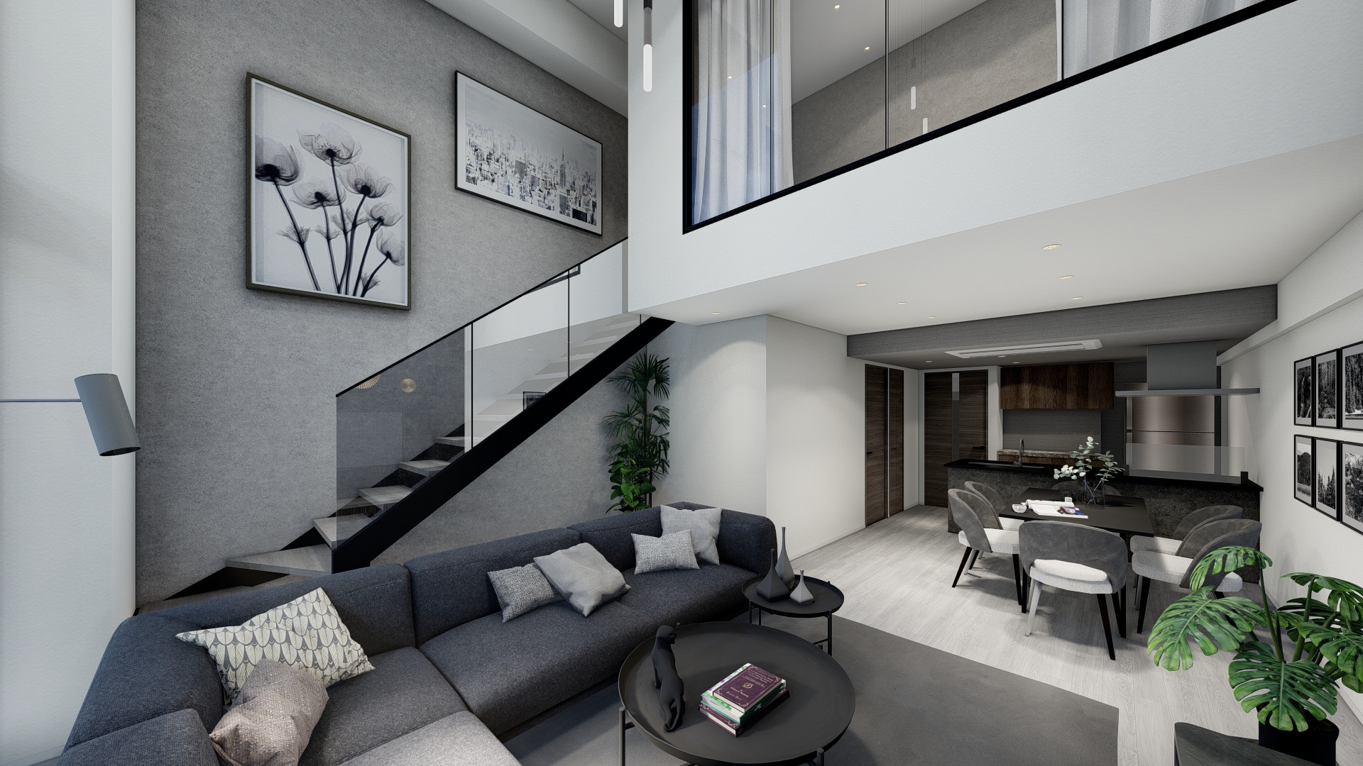居住性の面では、前面道路による厳しい道路斜線制限で天空率により削られた上部を最上階住戸のルーフバルコニーとして積極的に活用し、その開放的な外部空間に面して大開口のLDKを配置することで、明るく伸びやかな住空間を実現している。さらにメゾネット住戸には約5mの吹抜けを設け、2層分にわたる大開口によって垂直方向の開放感と光の広がりを感じられる、開放的な居住体験を創出している。