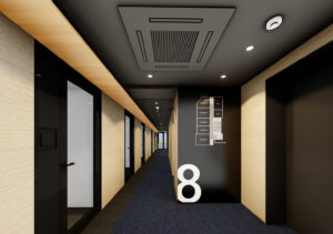 ラウンジと接続されるエレベーターホール