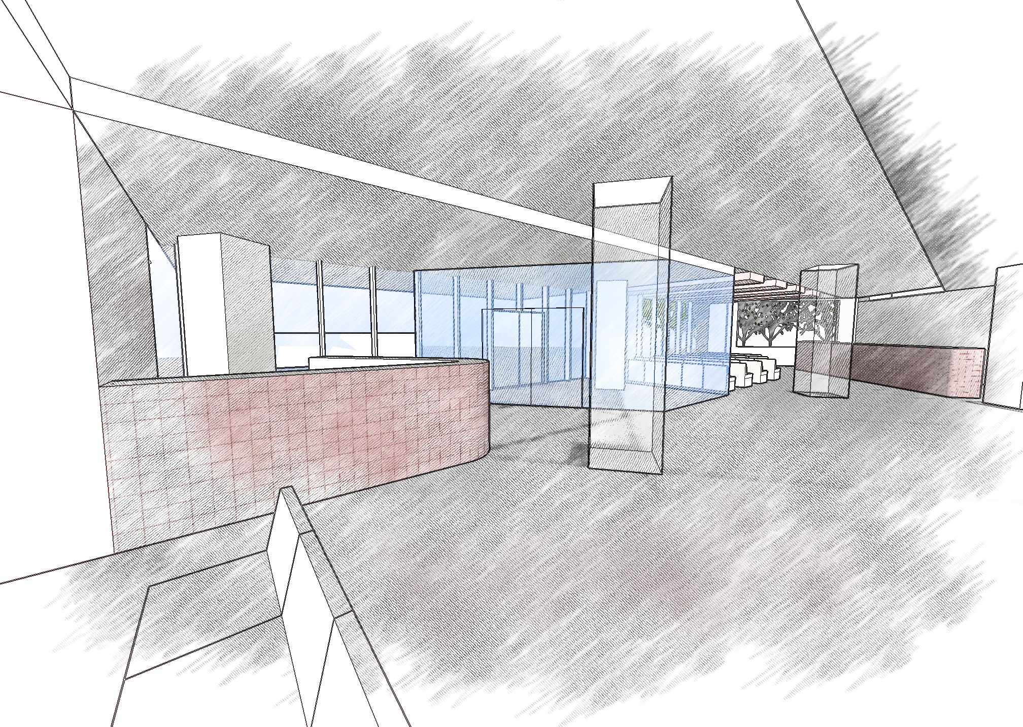 動線と視線を整理した待合空間の内装計画