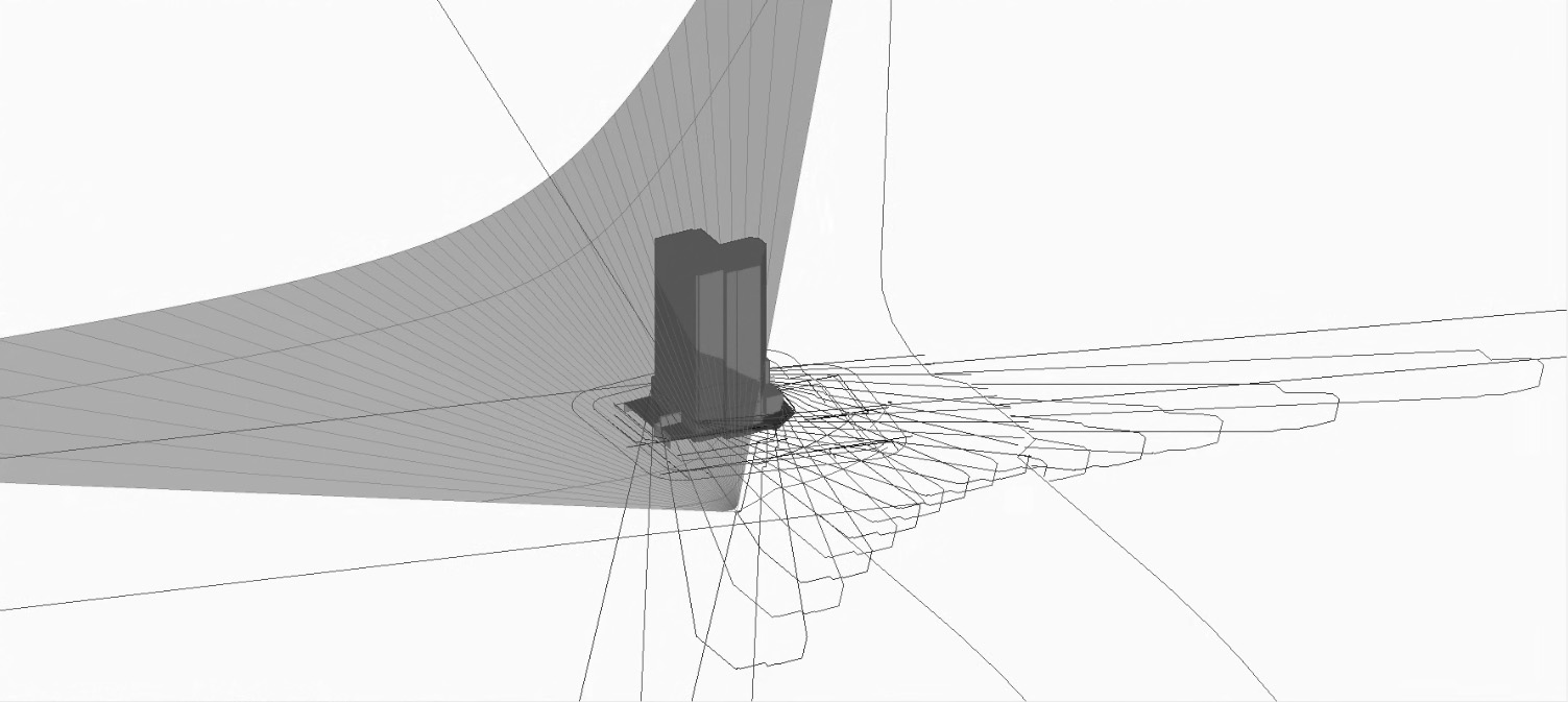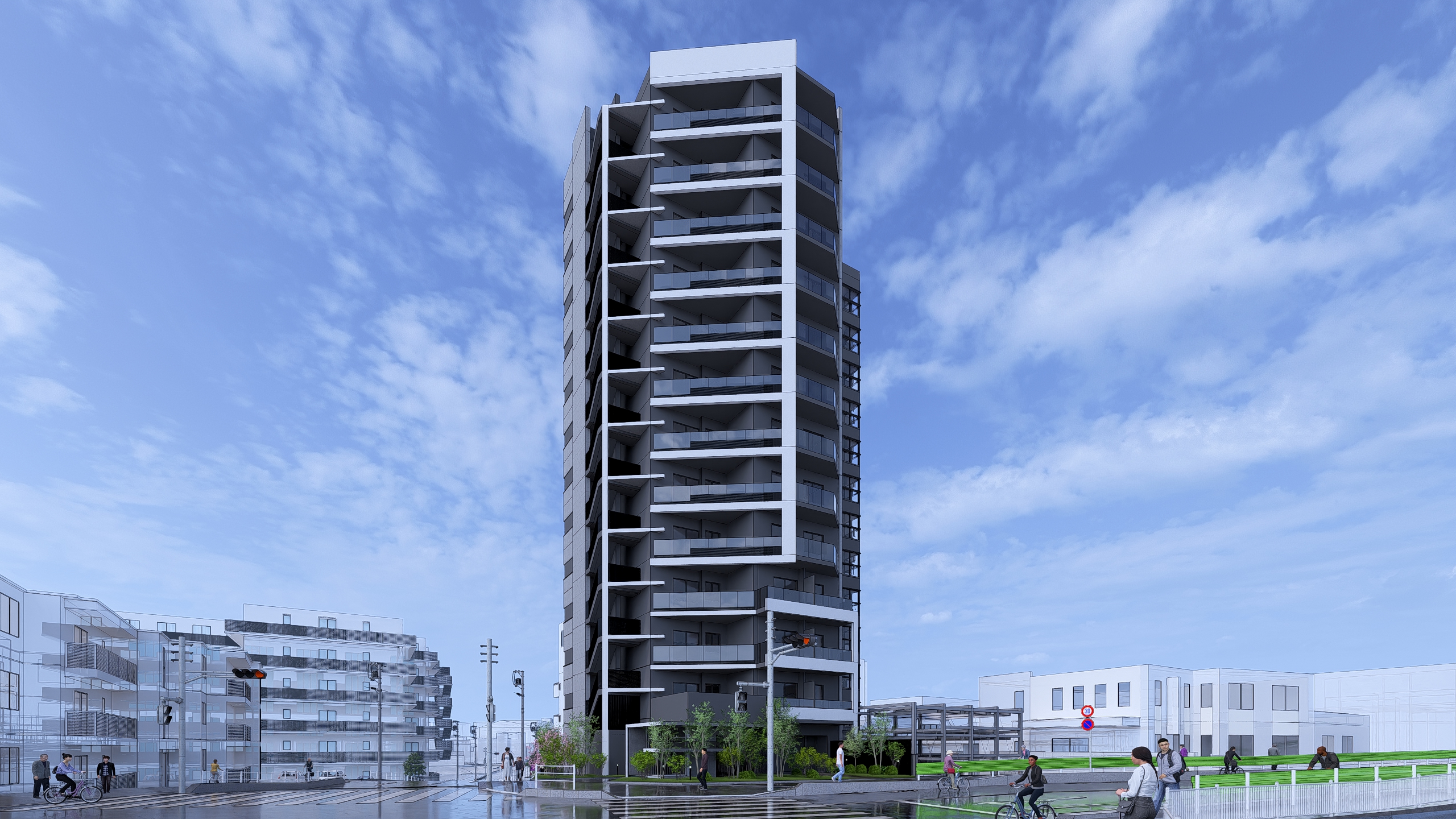 「境界=分断」ではなく「接続・融合」の象徴として表現する分譲集合住宅を計画。