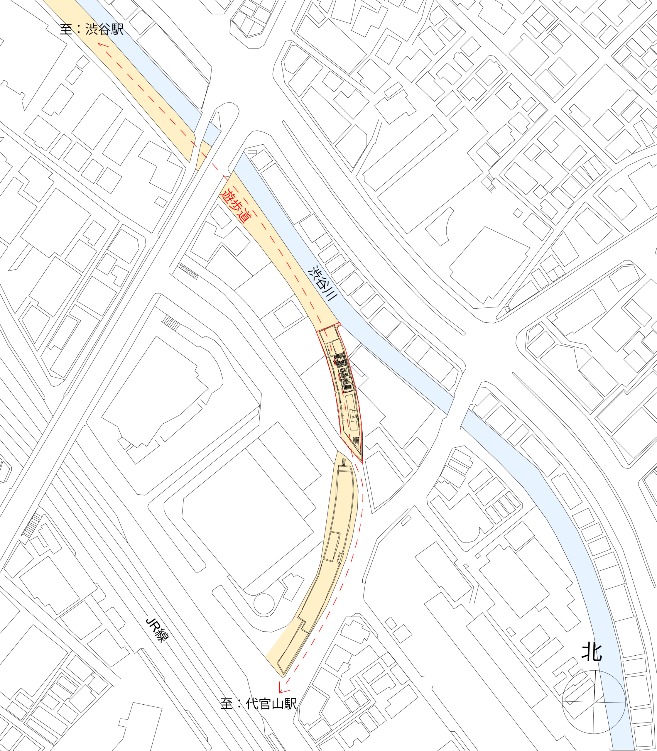 かつて東横線が走っていた線路跡地を再生し、多世代・異文化をつなぐ拠点として生まれる「渋谷ブリッジ」。 約600mにわたり整備される渋谷川沿い遊歩道の先に位置し、A棟は保育所、B棟はホテル・店舗・オフィスで構成される複合施設である。 渋谷ストリームから代官山へ賑わいを連続させ、新たな人の流れをつくるため、駅前とは異なる魅力をもつ用途を組み合わせ、高感度で多様な人々が集う場を目指していく。 東急が掲げる「広域渋谷圏(Greater SHIBUYA)」の都市機能を補完し、地域固有の魅力を育てながら世界へ発信し、東横線の記憶を次世代へ継承する場となる。 多世代と異文化、渋谷と代官山という二つの「橋渡し」を担い、渋谷南側の新しい街の文脈を編み直していく。