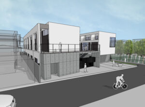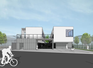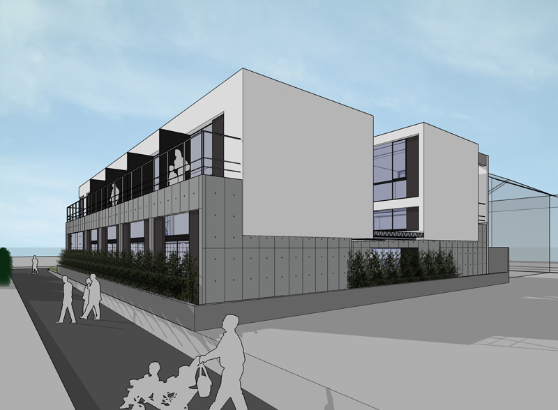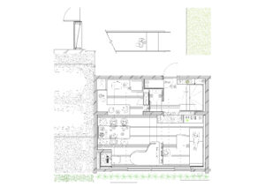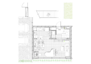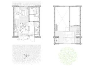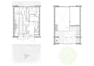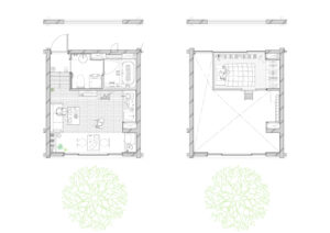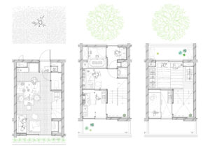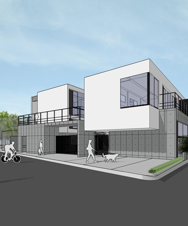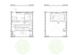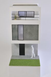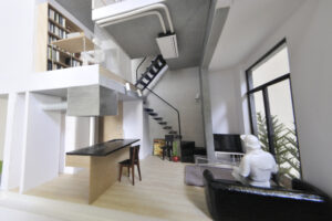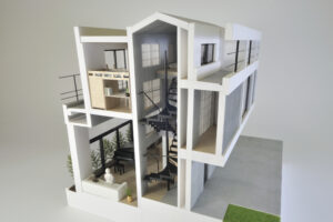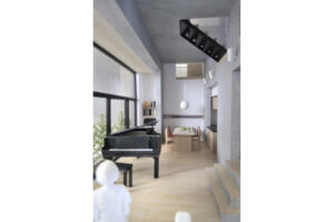 また、周辺建物との調和を図るため、建物の高さは慎重にコントロールし、2階建てにロフトを重ねた抑制の効いた構成としている。周囲のスケールを尊重しながらも、内部には立体的な広がりを確保することで、コンパクトさと開放感を両立させ、周辺環境に柔らかく溶け込みつつも個性を失わない建築を目指した。