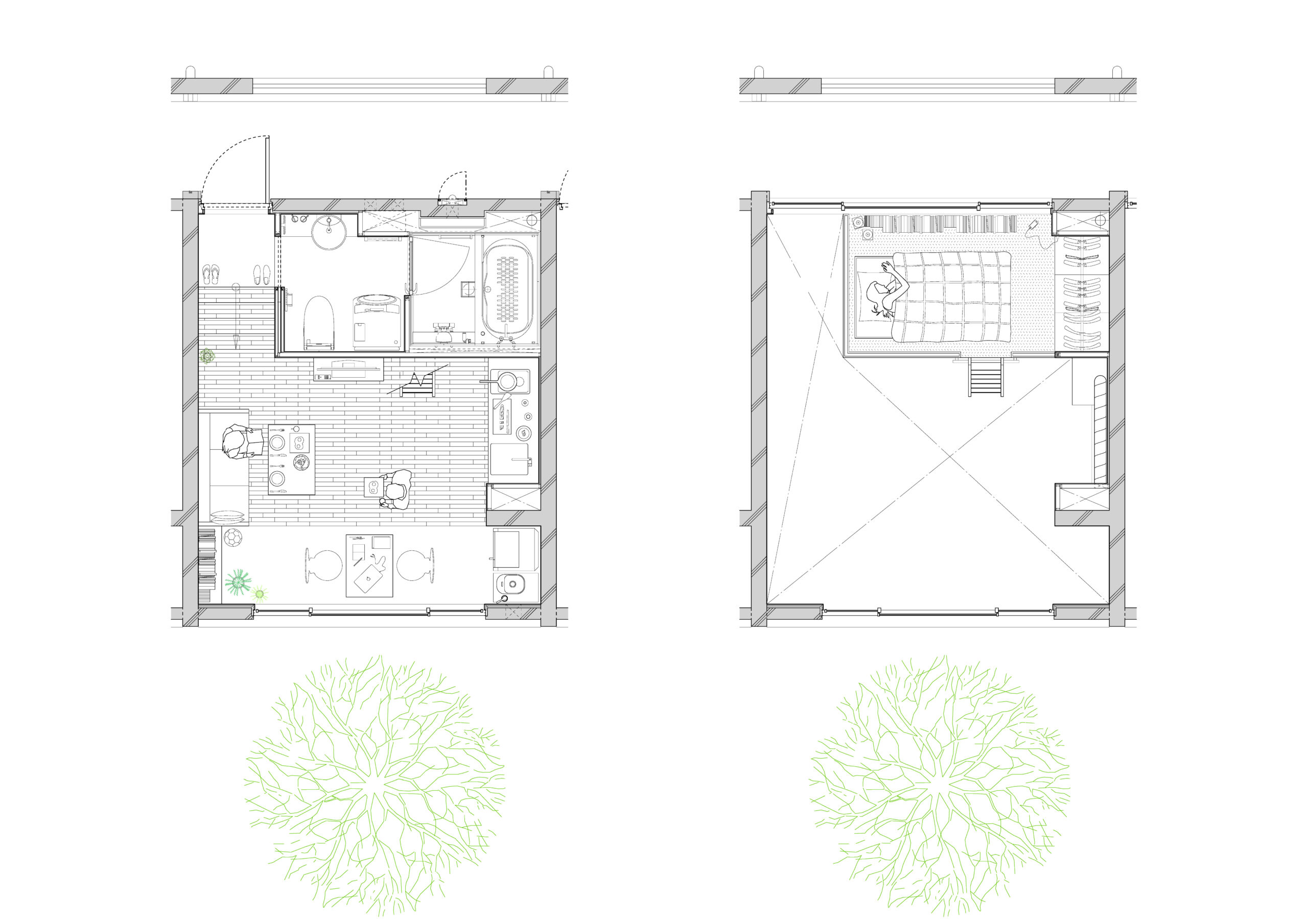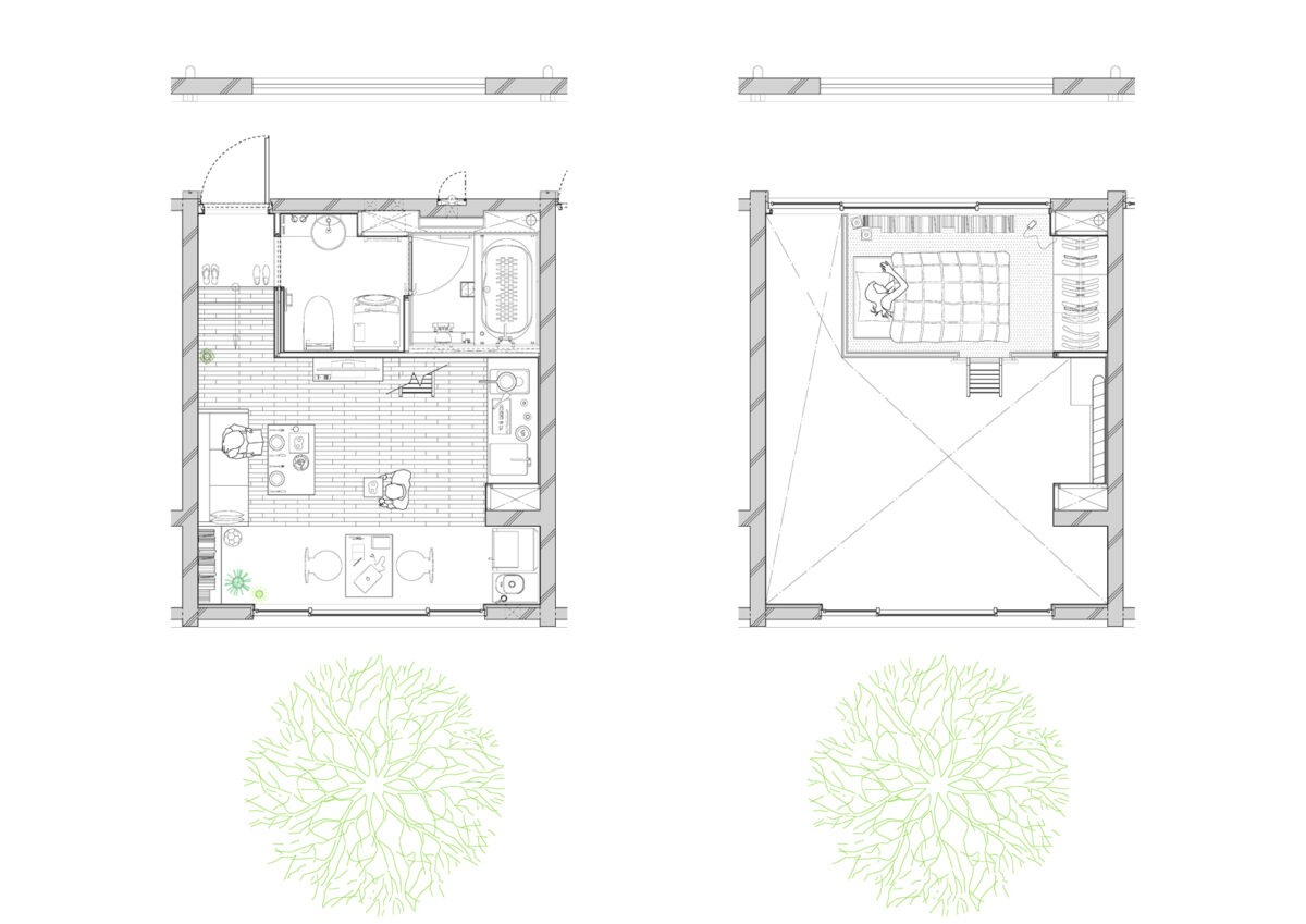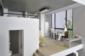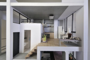 15戸から成る本計画は、大空間と極小空間を巧みに組み合わせながらそれらをひとつのシンプルなハコの中にまとめあげた賃貸マンションである。