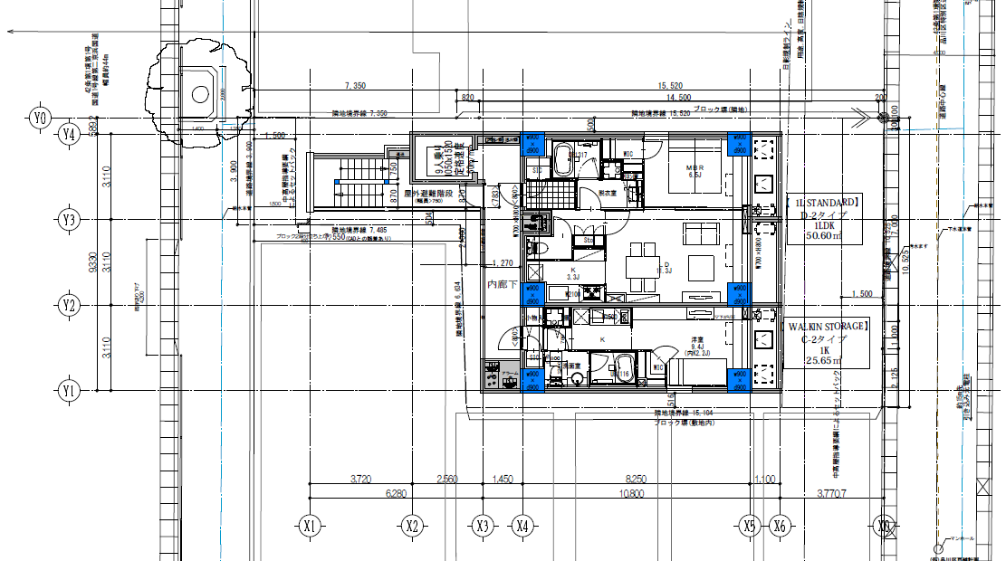 都心の狭小地に計画された、超高密度型の都市居住建築である。わずかな間口と細長い敷地形状に対し、構造・設備・避難動線を極限まで最適化し、縦方向へと空間を積層することで成立している。ファサードは、垂直ルーバーと階段シャフトがリズムを与えるミニマルな構成とし、街路へ対して軽やかな陰影をつくり出す。低層部には奥行きの深いピロティを設け、限られた土地の中に安全なアプローチと半屋外の余白を確保。内部はワンフロア・ワンユニットを基本としたクリアな平面構成で、プライバシーを重視しながら都市生活の快適性を高めている。立体的な避難階段と設備コアを背骨として、合理性と柔軟性を両立させた、超高密度都市における新しい住まいの原型となる建築である。