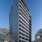 都心では収益性から住戸が狭小化しがちだが、本計画ではその現実を肯定的に捉え、「住まいを着こなす」という視点を導入した。住戸は身体に寄り添うスケールに再構成され、可変性をもたせたプランやポケットのように細やかに散りばめた収納により、多様な暮らし方をしなやかに受け入れる。外部環境の豊かさと内部スケールの繊細さを重ね合わせ、都市における新たな住まい方を提示する集合住宅である。