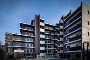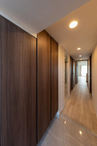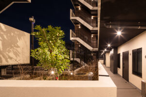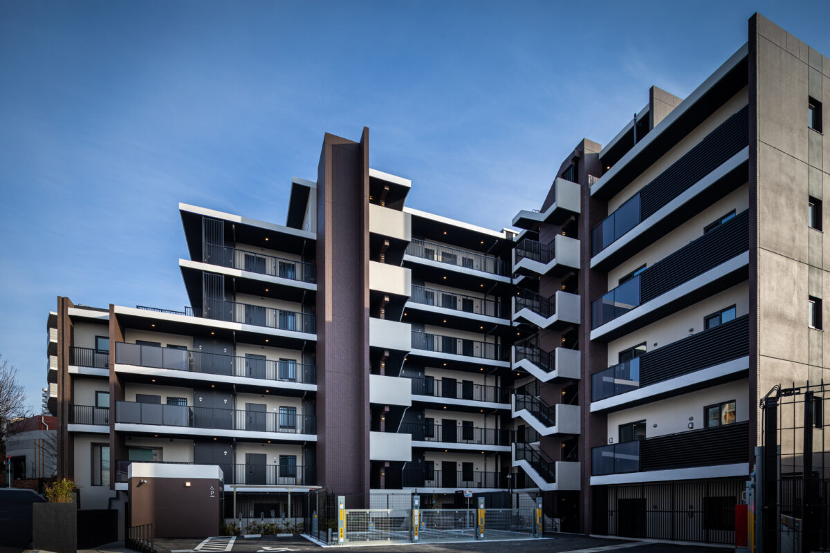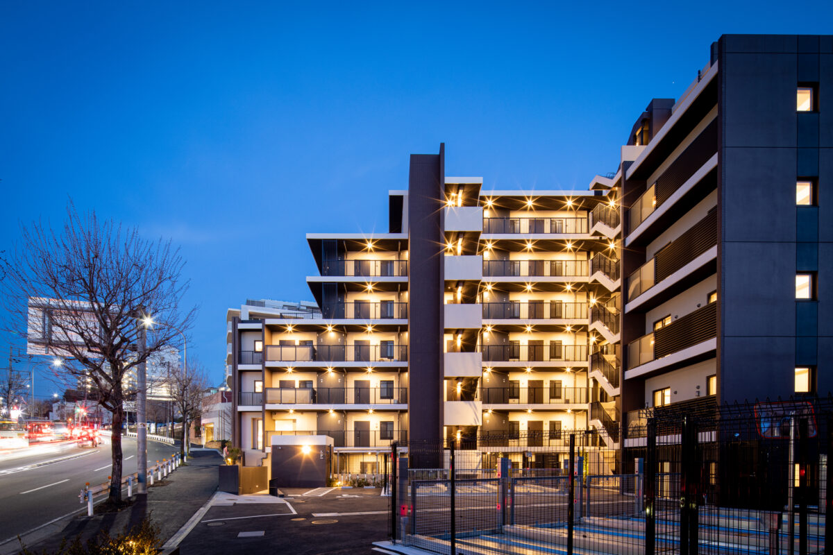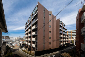 このプロセスによって形成された建築デザインは、住戸配置や共用部計画、ボリューム構成から外観のプロポーション、素材の選定に至るまで一貫した論理に貫かれ、計画全体に明確な秩序と統一感をもたらしている。結果として、分譲マンションに求められる機能性や居住性に加え、街並みに対する品格ある佇まいと、住まい手が誇りを持てる建築としての美しさを確かなかたちで提示している。