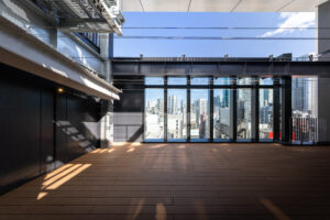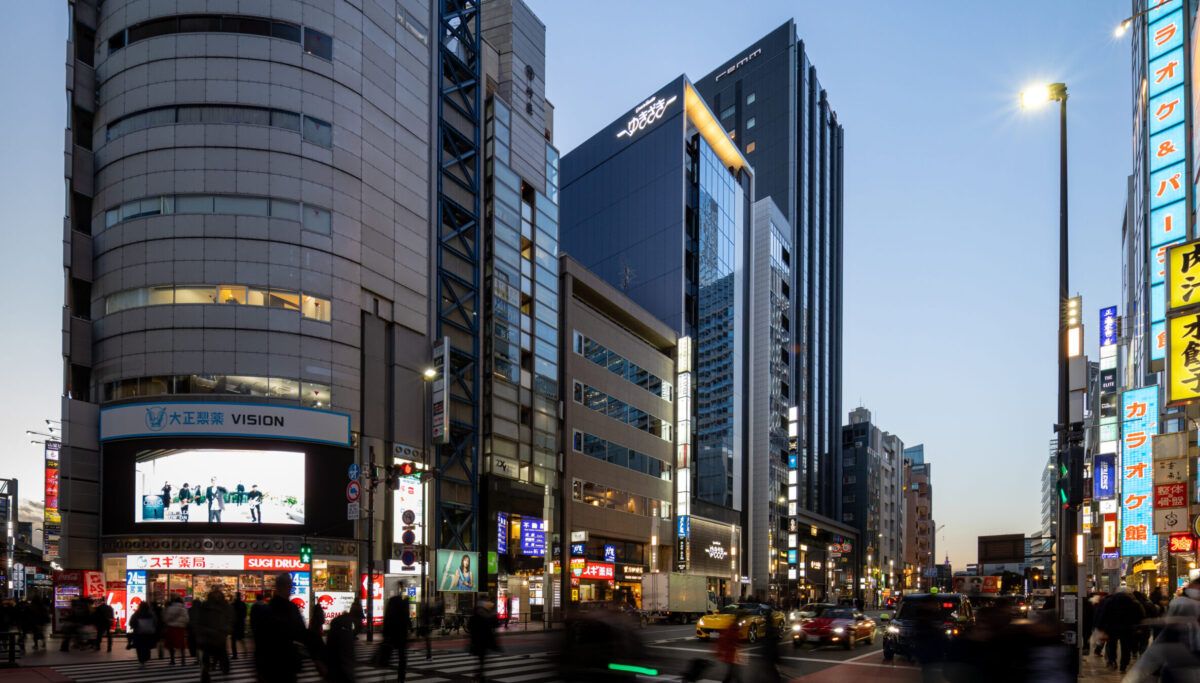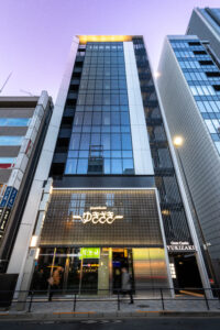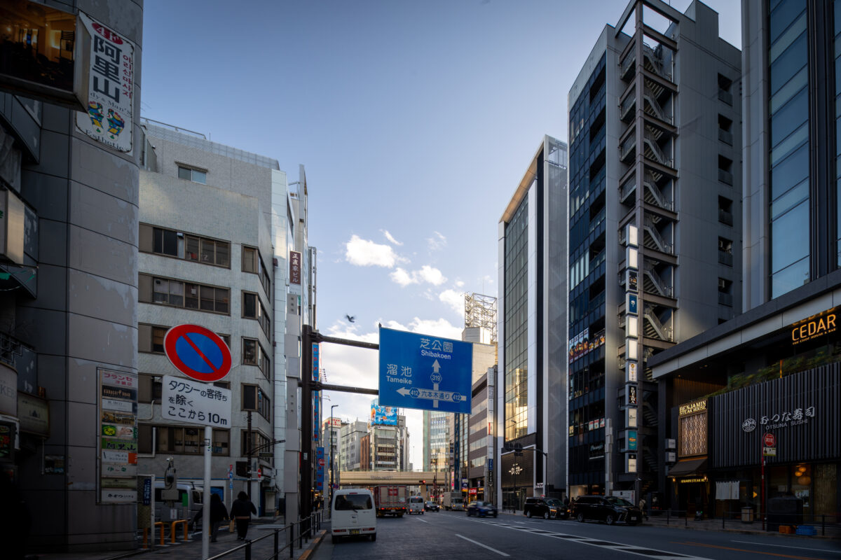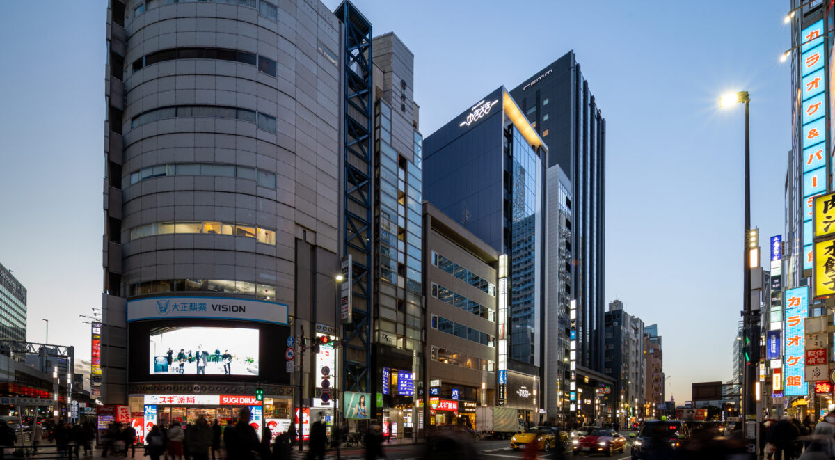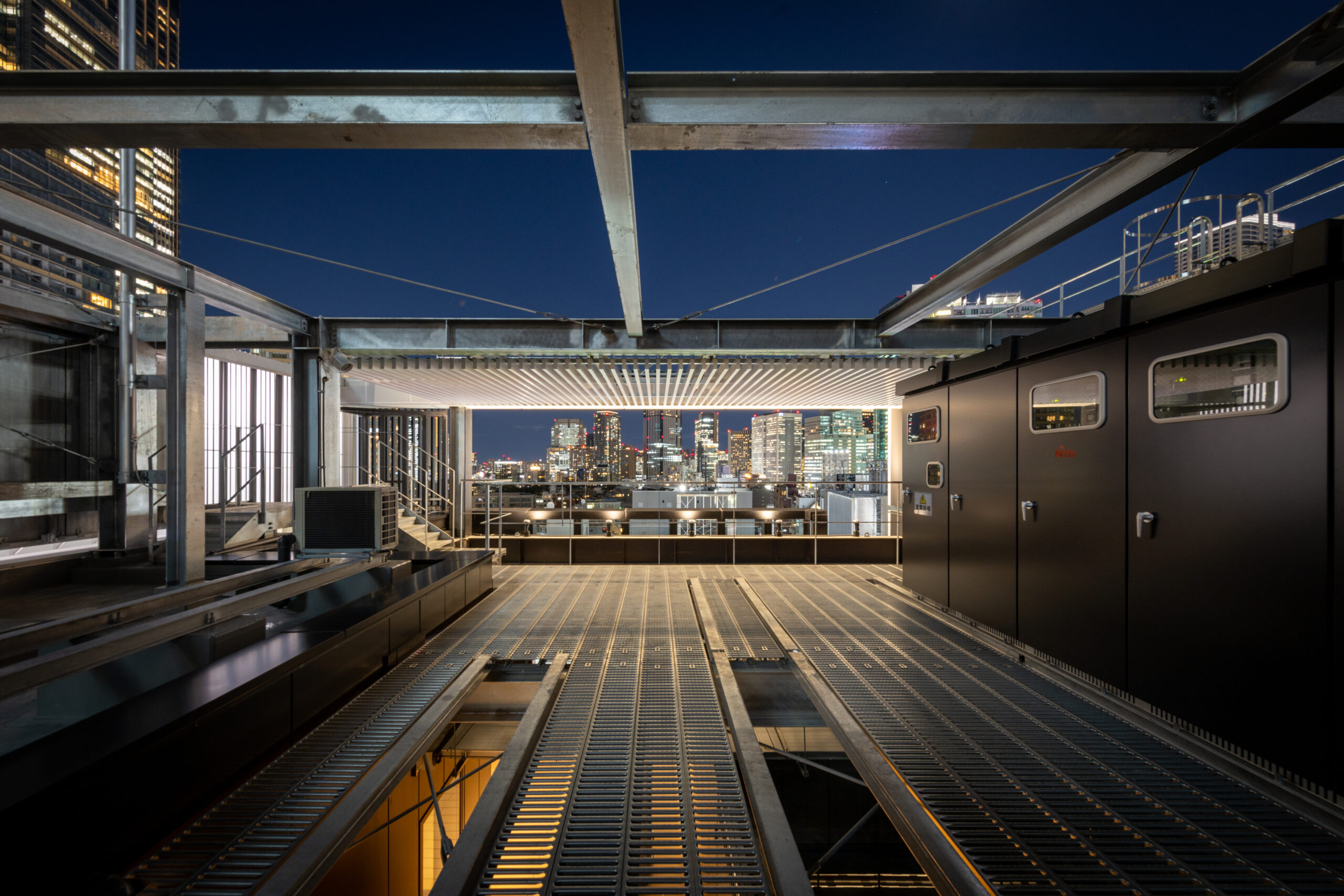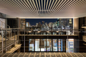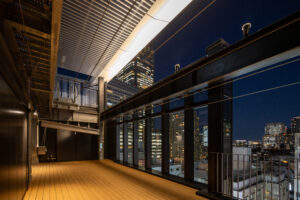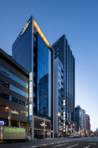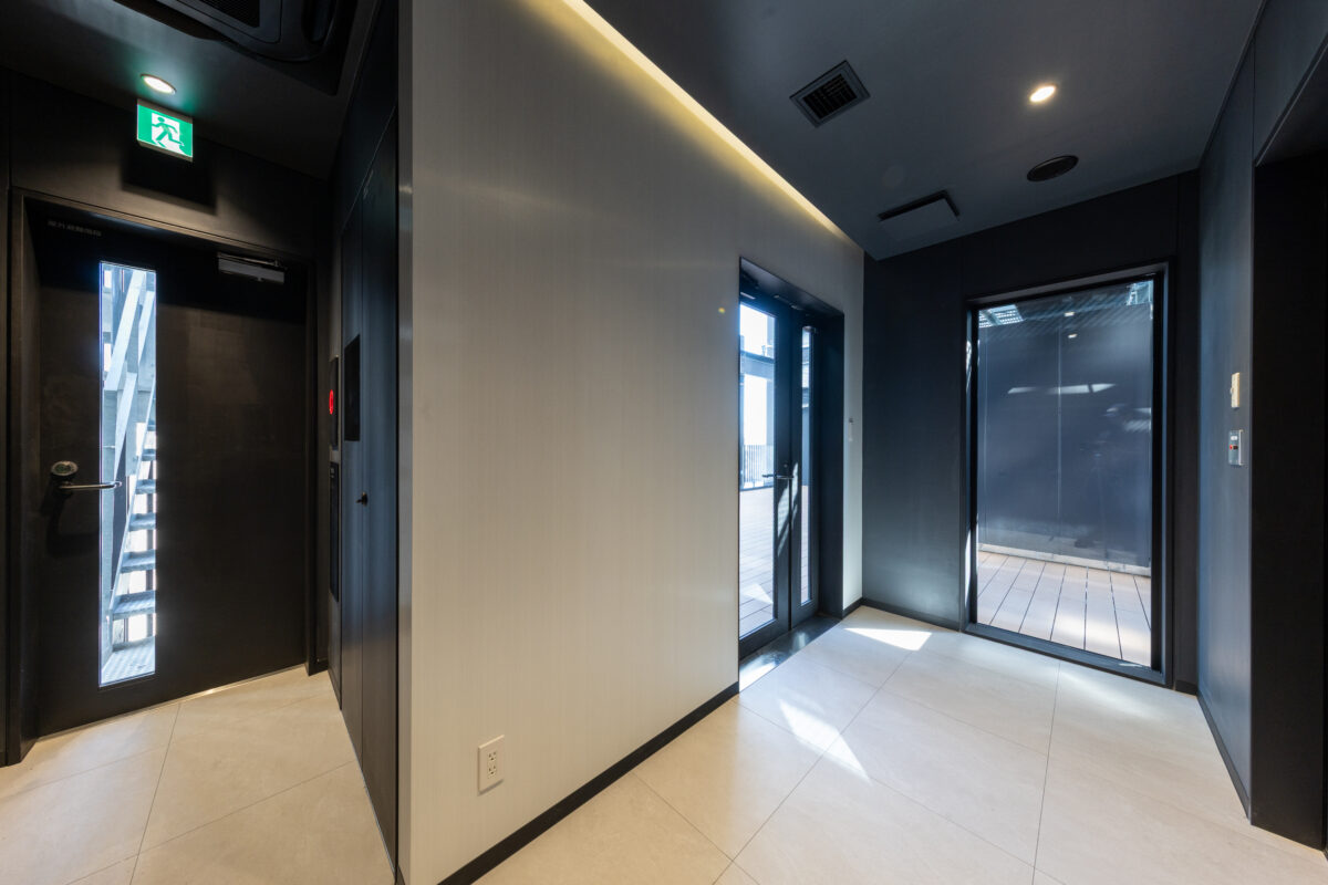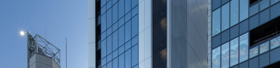 六本木の賑わいの中に誕生した本建物は、宝石のような上質さと存在感を街に添えることを目指して計画されたテナントビルである。外観は過度な装飾を排したシンプルな構成としながらも、光の当たり方や見る角度によって印象が変化し、昼と夜で異なる表情を楽しめるデザインとしている。建物は屋上の工作物を含めて一体的にデザインされており、建築と設備の境界を感じさせない統合された外観を形成することで、実際の高さや規模以上の伸びやかさと存在感を生み出している。その結果、都市の中で自然と人の視線を引き寄せる佇まいを実現した。低層部は素材やディテールにこだわり、宝石店の家紋をモチーフとした基壇部によって高級感と個性を表現している。また、歩行者の視線に近いスケールに合わせて繊細な構成とし、足元から豊かな表情を生み出している。エントランスは質感の異なる黒を基調に構成し、重厚さと落ち着きを兼ね備えた空間とすることで、訪れる人を静かに迎え入れる。さらに屋上にはウッドデッキによるルーフトップバーを設け、都市の喧騒から少し離れた特別な時間を過ごせる場を創出している。全体として、都市の中で品格ある存在感を放つ建築を目指した。