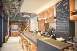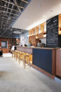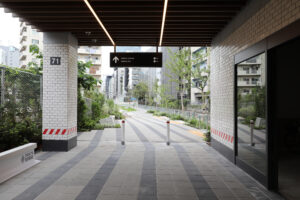 そこで私たちは「空中に浮いた保育園」というコンセプトのもと、遊歩道から連続する1階のピロティ空間を地域に開き、その沿いにギャラリーやカフェを配置して賑わいを受け止め、街の活動が途切れずにつながる計画とした。その上で、より落ち着いた環境が求められる保育園を2・3階に配置し、都市の活気を足元で受け止めながら、上階に子どもたちの安心できる居場所と学びの場を確保する構成としている。