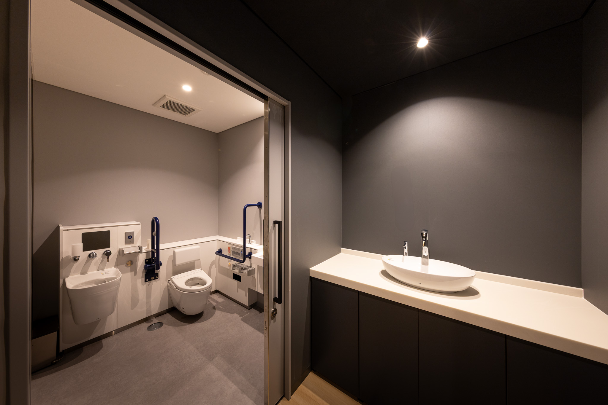 陰影の出方を丁寧に調整することで、日中には光が柔らかに揺らぎ、夜間には最小限の光が輪郭を静かに浮かび上がらせる。歴史と現代性が自然に重なり合う、上野らしい佇まいを目指した外観である。
