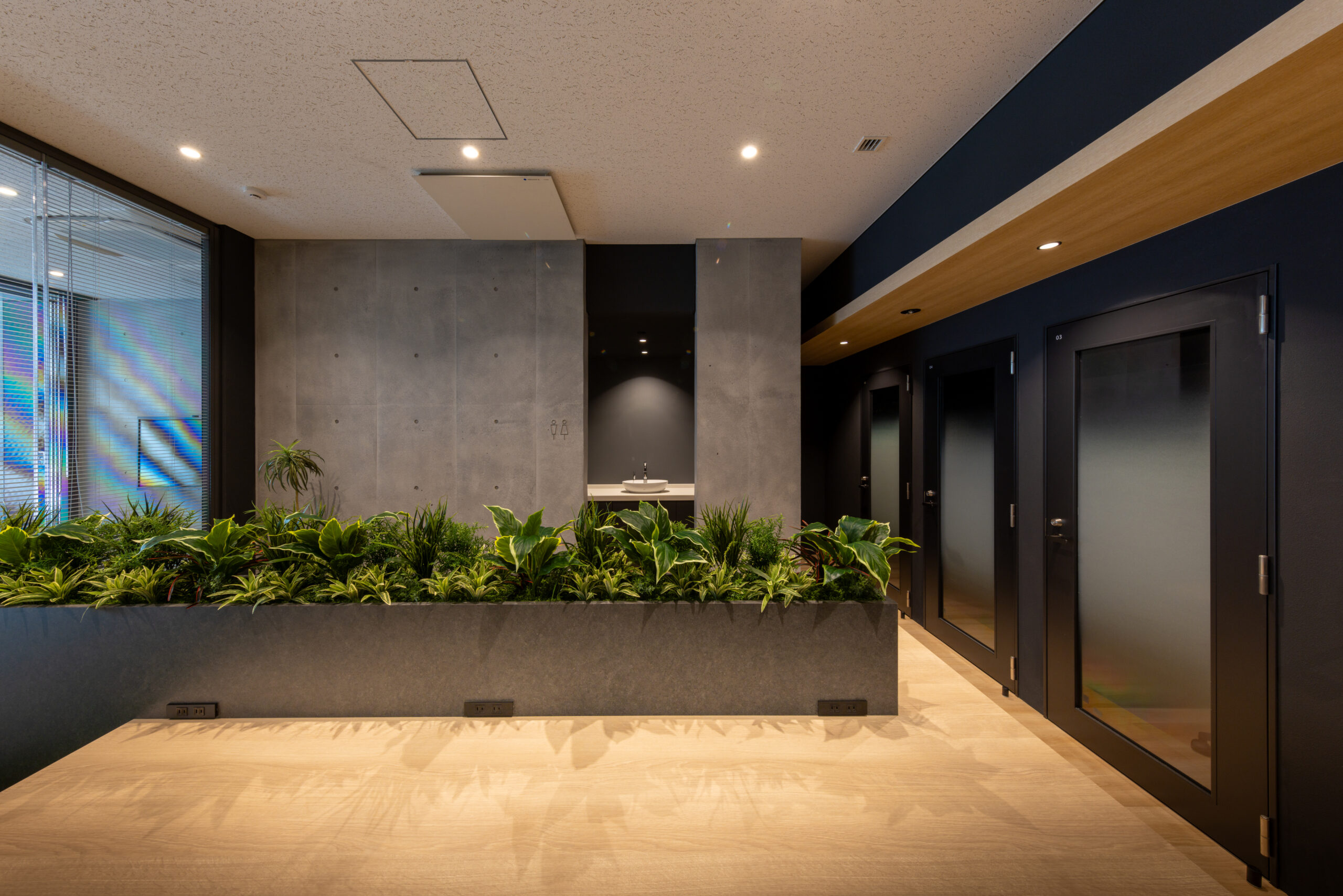 1階は都市に開かれたシェアラウンジとして、人が集まり、交わり、新たな発想が生まれる“触媒空間”を構成。ワーク・交流・休息が緩やかに重なり合うシークエンスをつくり、従来のオフィス像を更新する柔軟な場を提示している。
