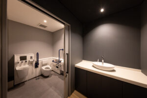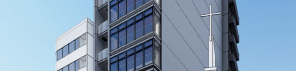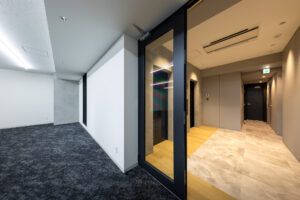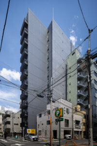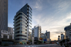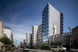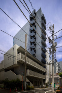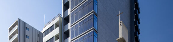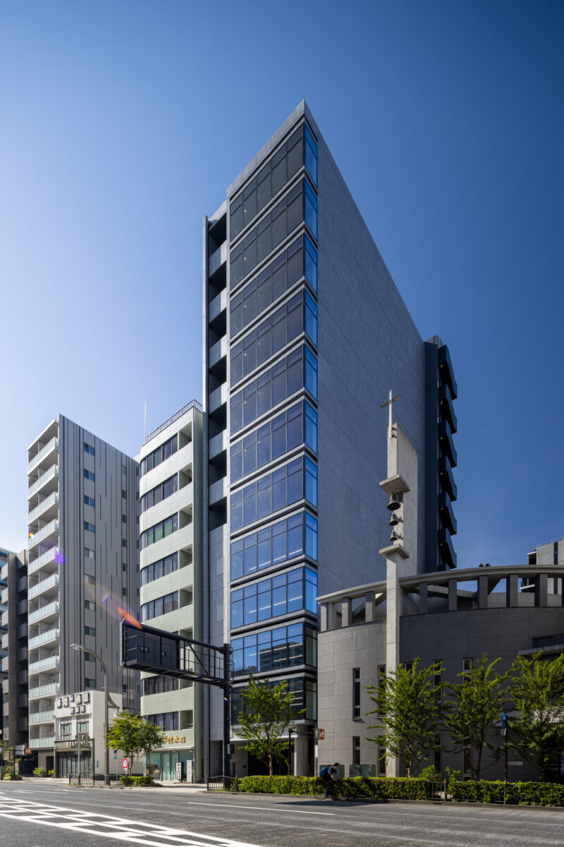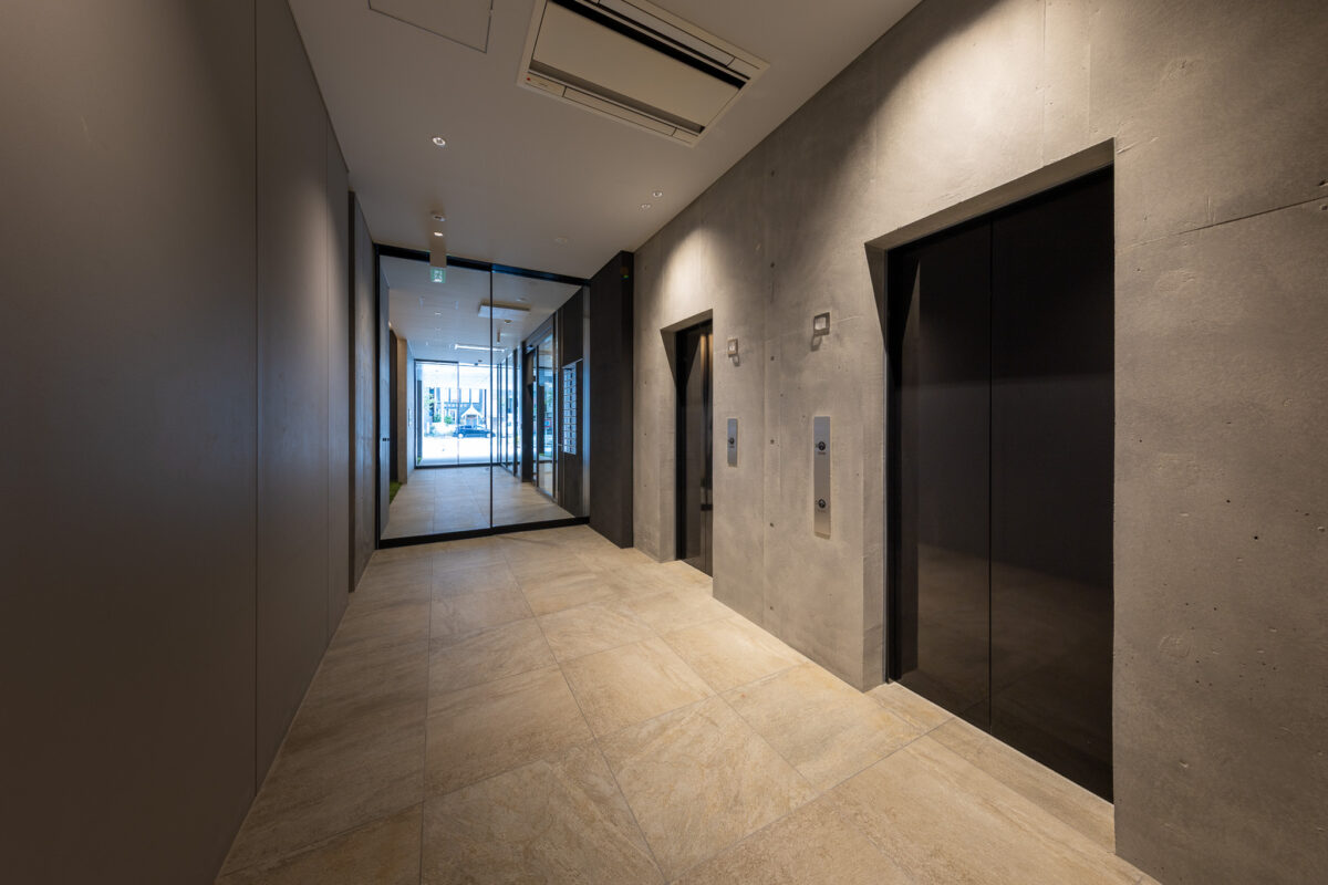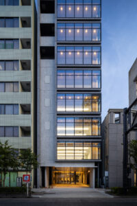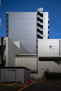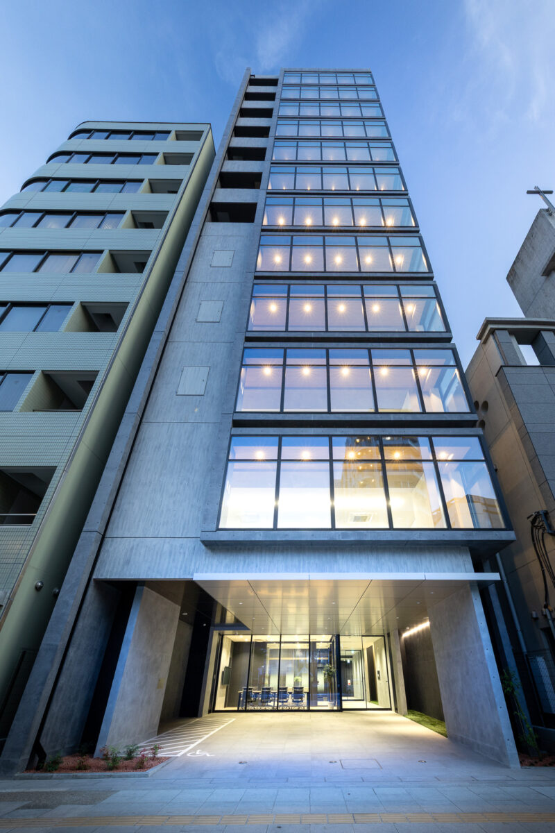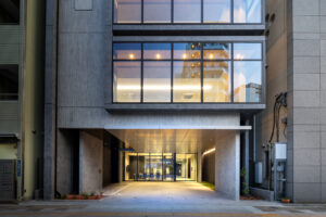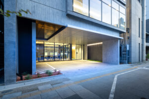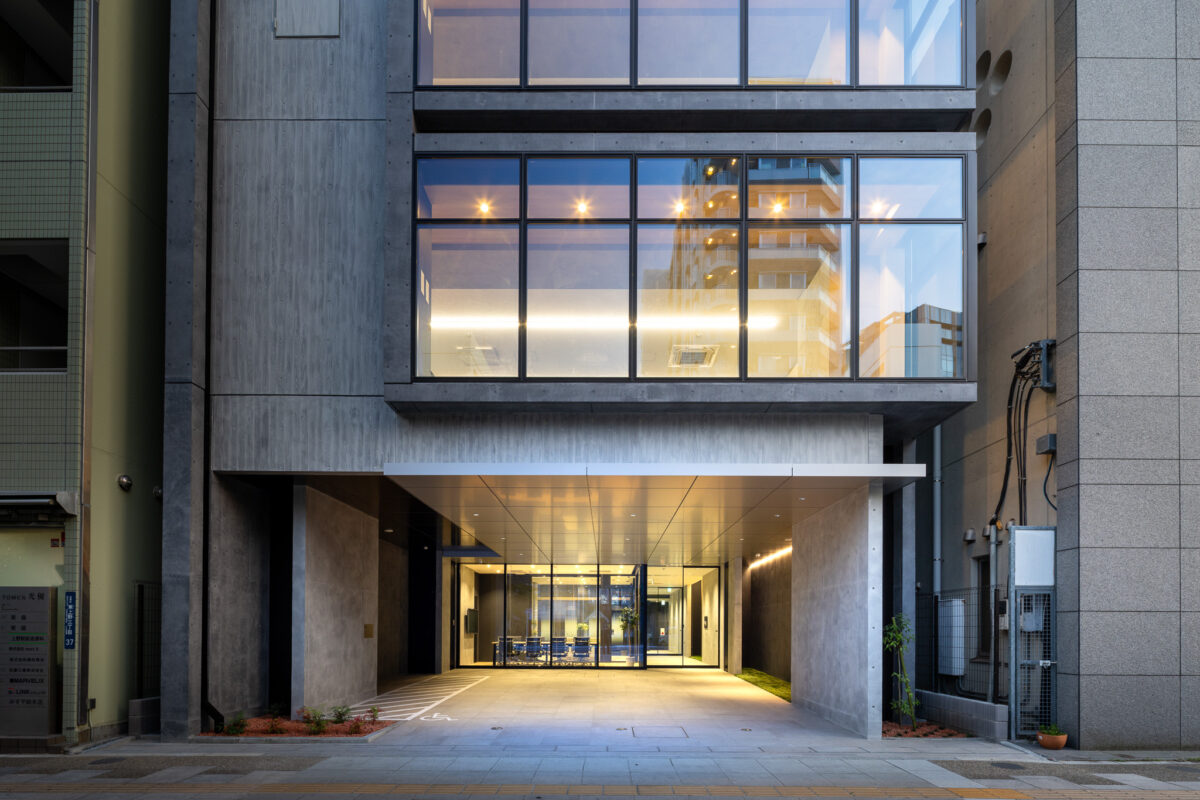 外観を構成するコンクリートの外皮は、RC造が本来備える質量感や肌理を率直に表出させ、深い陰影によって静謐で引き締まった表情を生み出している。時間帯や天候によって刻々と変化する光の受け止め方は、建築に豊かな表情の揺らぎを与え、街のスケールに呼応しながらも周囲に埋没しない、確かな存在感をつくり出している。