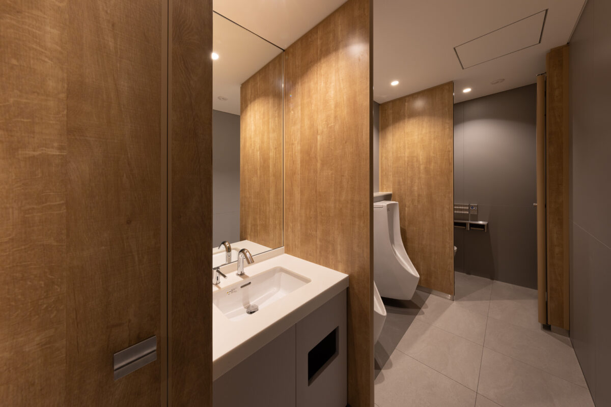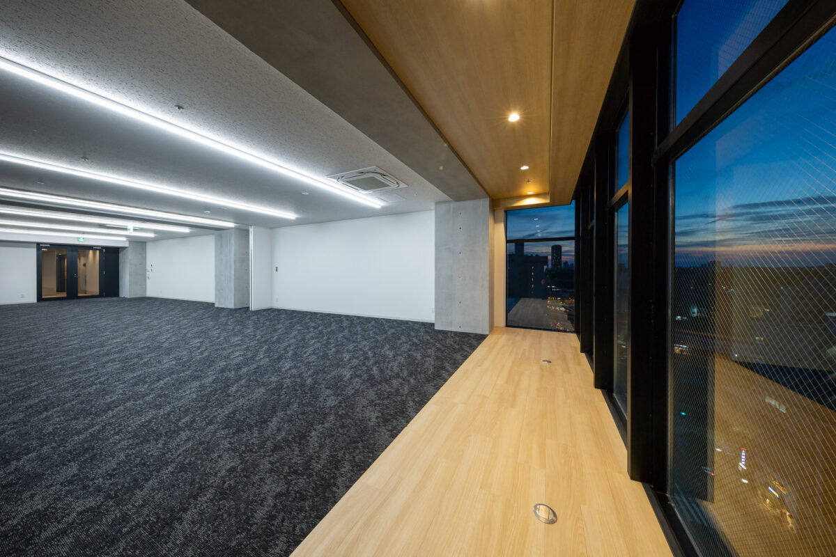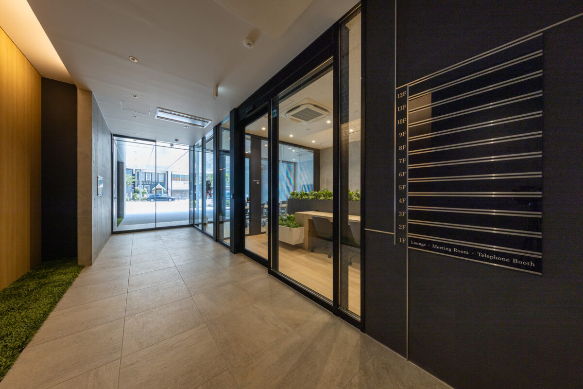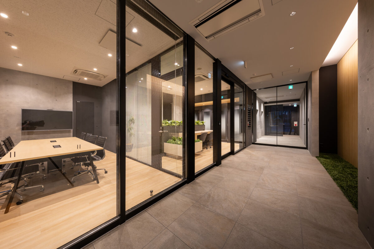 1階には都市に開かれたシェアラウンジを配置し、街と建築を緩やかにつなぐ結節点とした。ここでは、ワーク、交流、休息といった異なる行為が明確に分節されるのではなく、連続的に重なり合う空間のシークエンスとして構成されている。人が集い、偶発的に交わり、新たな発想や関係性が生まれる“触媒空間”として、従来の画一的なオフィス像を更新する柔軟な場を提示した。