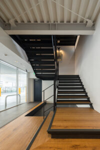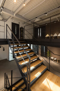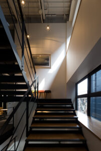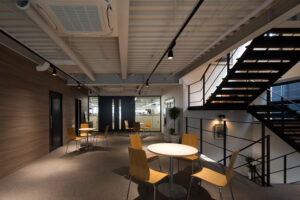 階段周りの抜けや自然光が差し込む構成は、上下階のコミュニケーションを促し、社内のつながりを立体的に広げる仕掛けでもある。