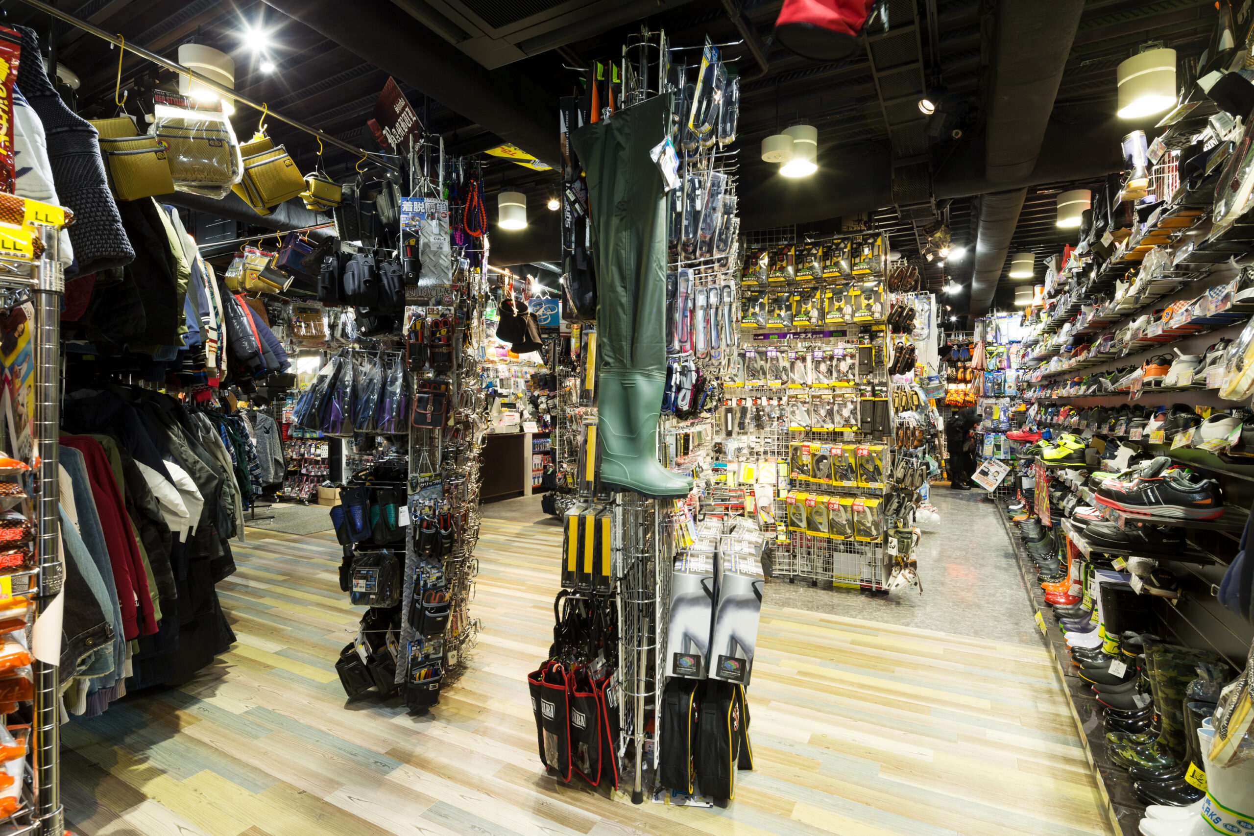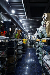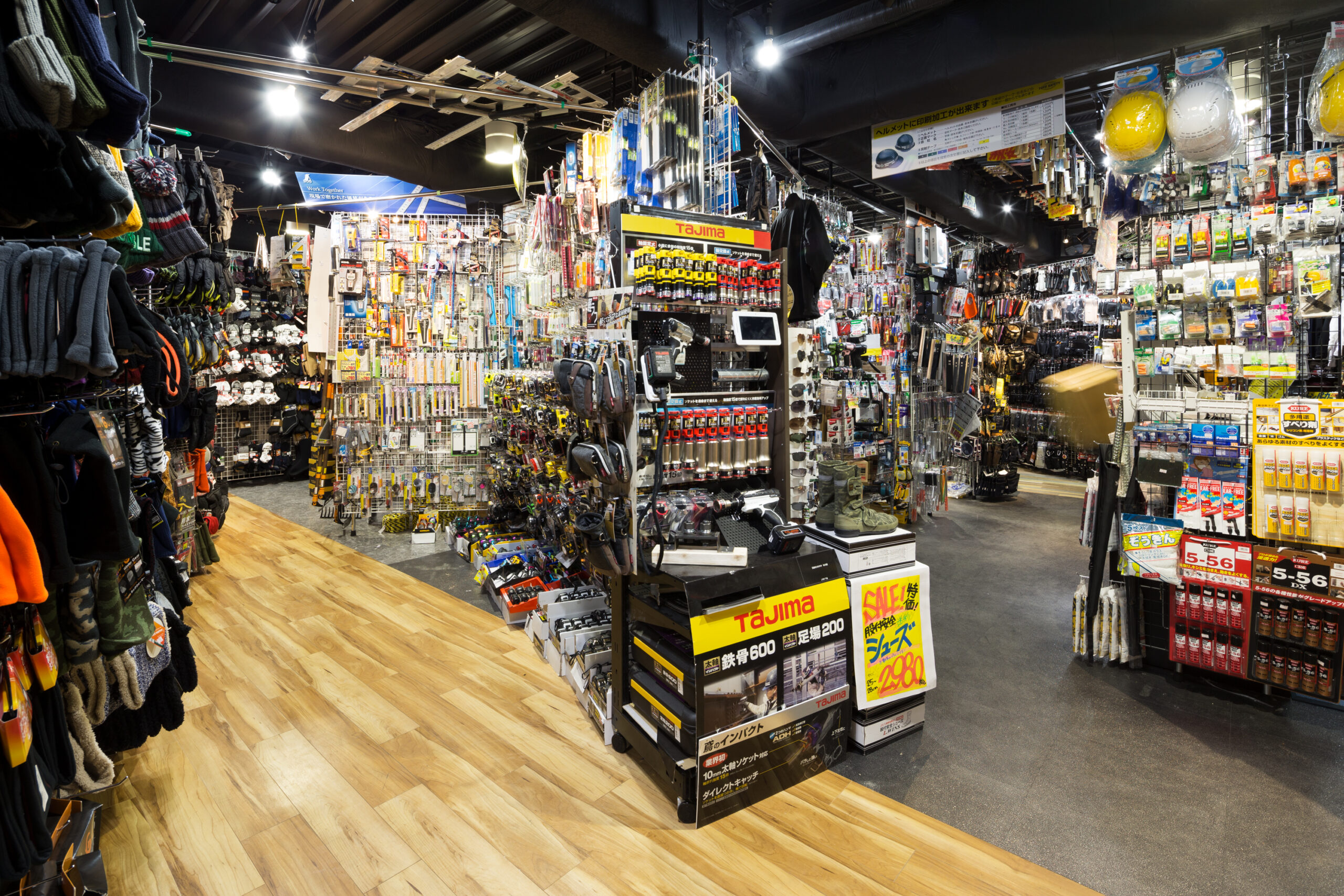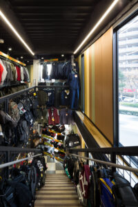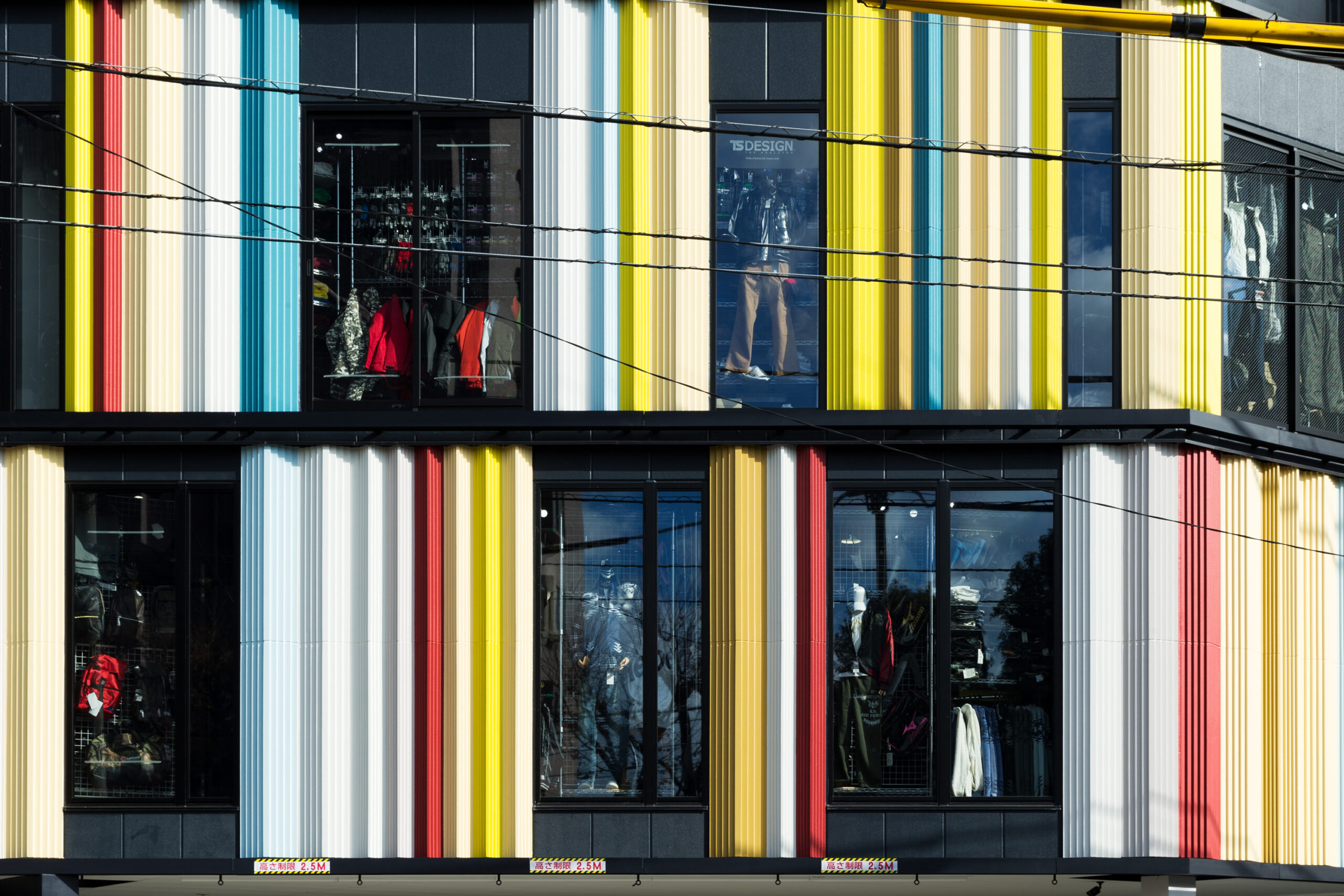 単なる「作業服店」という枠組みを超え、多様な職種や個性が集まる様子を、色彩豊かな縦のライン(アルデコ)で表現。